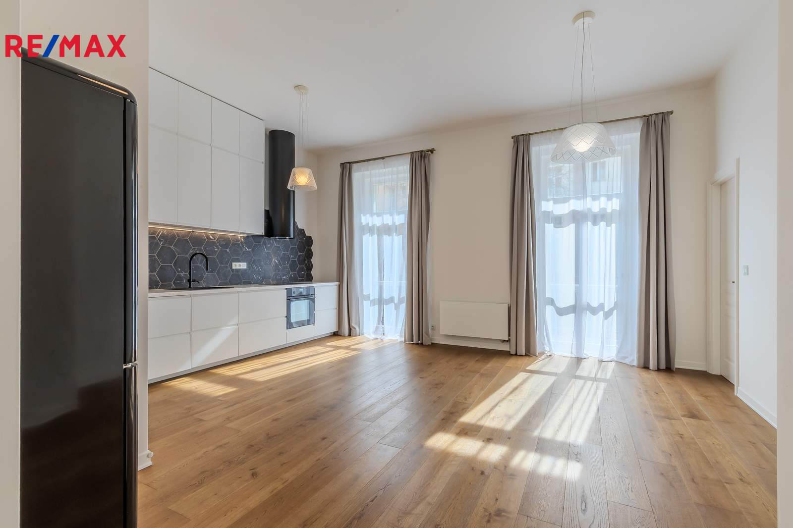 V zastoupení majitele nabízíme k pronájmu byt 3+kk, cca 109m2, v nově zrekonstruované rezidenční budově s výtahem. V celém domě byly při citlivé rekonstrukci obnoveny původní architektonické prvky fasády a vnitřní výzdoba. Celá přestavba byla realizována s uživatelskými standardy moderní doby.