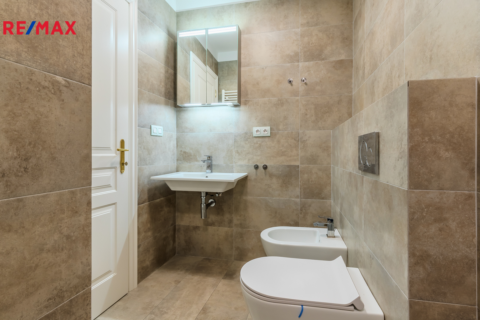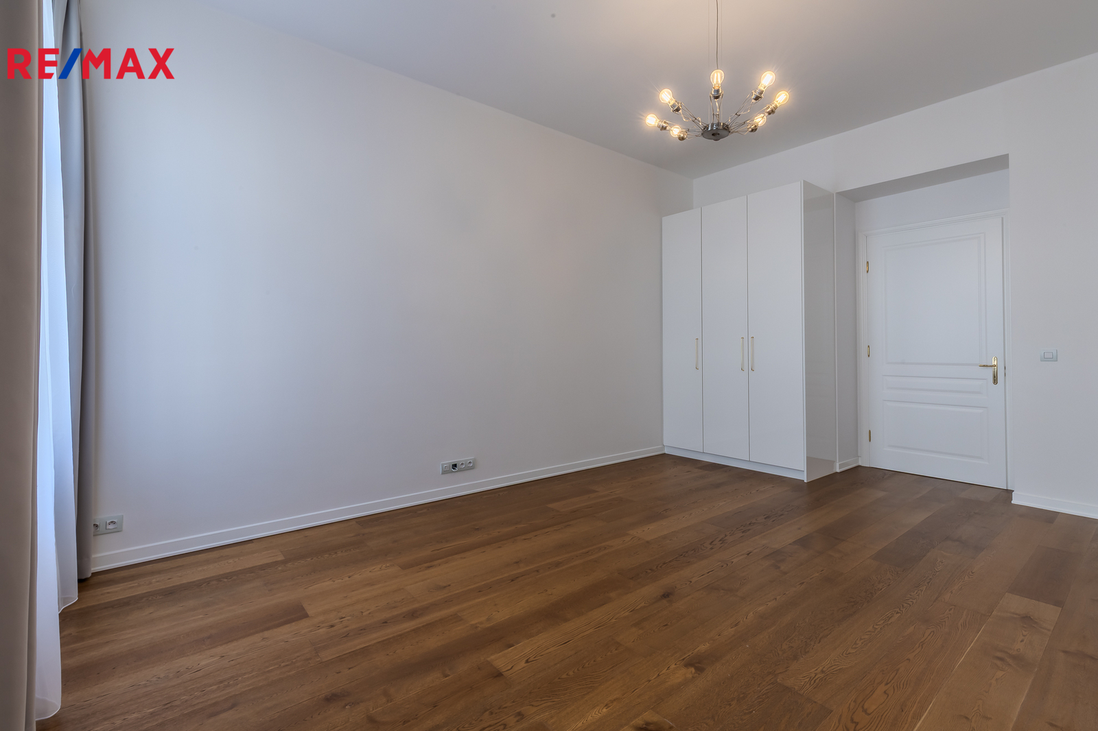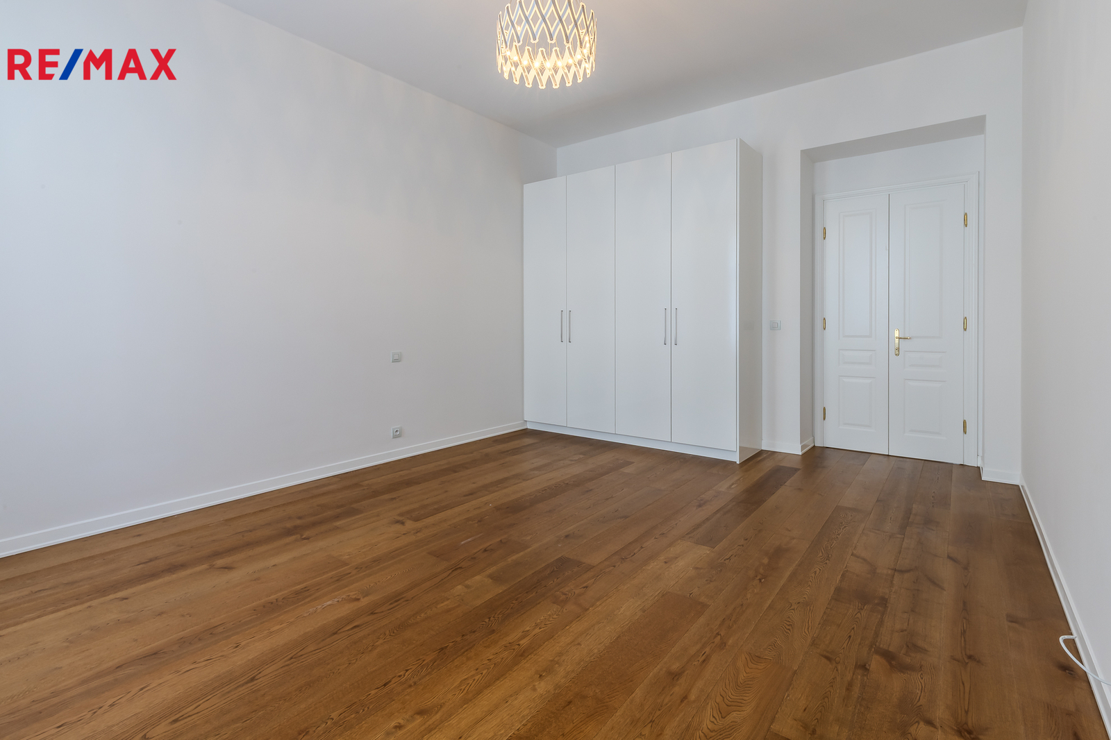 Interier bytu tvoří prostorný obývací pokoj s plně vybavenou kuchyňskou linkou, dvě samostatné ložnice, vstupní hala, dvě koupelny s toaletami, jedna se sprchovým koutem a druhá s vanou. Náleží k němu technická komora, sklep a balkon s výhledem do zeleně vnitrobloku. Vybavení a zřizovací předměty jsou ve vysoké kvalitě: designová kuchyň, dřevěné podlahy, bezpečnostní vstupní dveře, francouzská okna apod. Vytápění je v domě řešeno centrálně. Elektroměr bude převeden na budoucího nájemníka. Měsíční nájemné je 45 000,- Kč a zúčtovatelné měsíční zálohy na služby jsou cca 7000,- Kč. Kauce na zařízení a vybavení bytu činní 80 000,- Kč. Poptávající klient je srozuměn s úhradou provize pro realitní kancelář ve výši jednoho měsíčního nájmu plus DPH. Pro další informace nebo sjednání termínu prohlídky prosím kontaktujte níže uvedeného makléře nabídky. Prodávající si vyhrazuje právo vybrat kupujícího na základě jím zvolených kritérií.