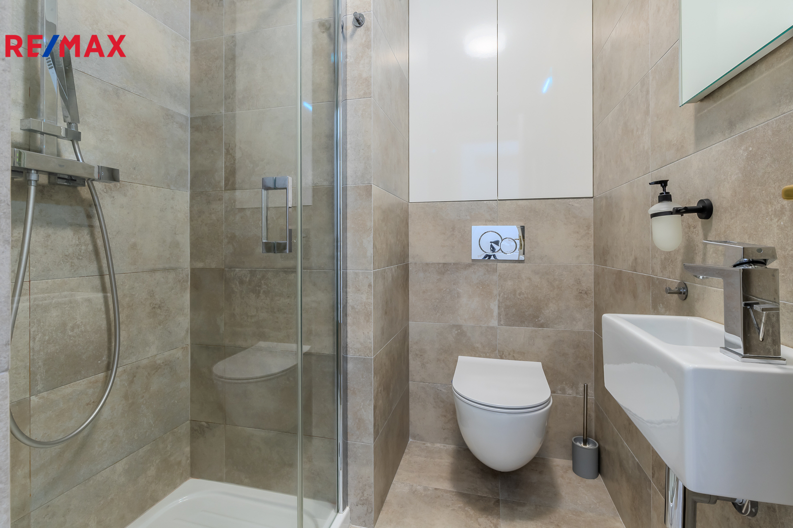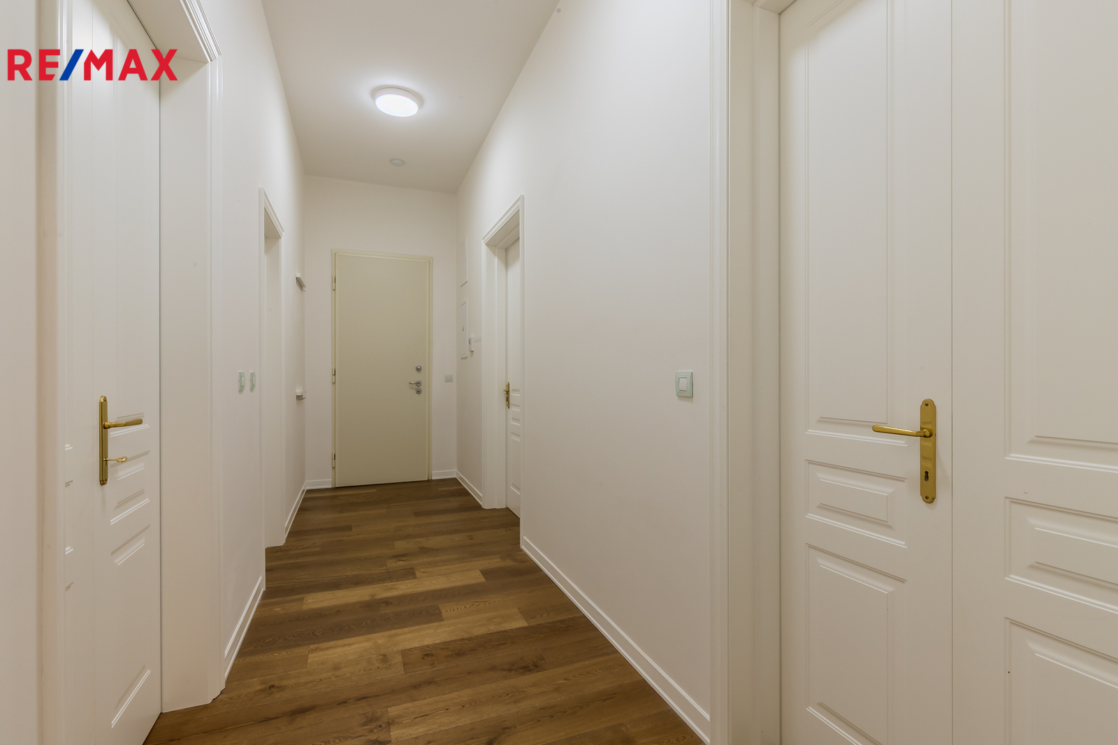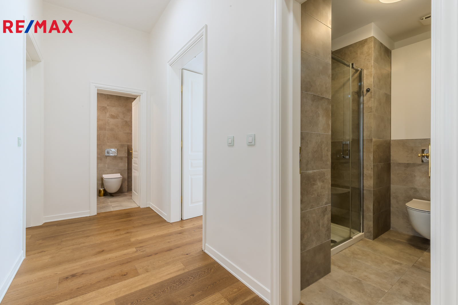 Interier bytu tvoří prostorný obývací pokoj s plně vybavenou kuchyňskou linkou, dvě samostatné ložnice, vstupní hala, dvě koupelny s toaletami, jedna se sprchovým koutem a druhá s vanou. Náleží k němu technická komora, sklep a balkon s výhledem do zeleně vnitrobloku. Vybavení a zřizovací předměty jsou ve vysoké kvalitě: designová kuchyň, dřevěné podlahy, bezpečnostní vstupní dveře, francouzská okna apod. Vytápění je v domě řešeno centrálně. Elektroměr bude převeden na budoucího nájemníka. Měsíční nájemné je 45 000,- Kč a zúčtovatelné měsíční zálohy na služby jsou cca 7000,- Kč. Kauce na zařízení a vybavení bytu činní 80 000,- Kč. Poptávající klient je srozuměn s úhradou provize pro realitní kancelář ve výši jednoho měsíčního nájmu plus DPH. Pro další informace nebo sjednání termínu prohlídky prosím kontaktujte níže uvedeného makléře nabídky. Prodávající si vyhrazuje právo vybrat kupujícího na základě jím zvolených kritérií.
