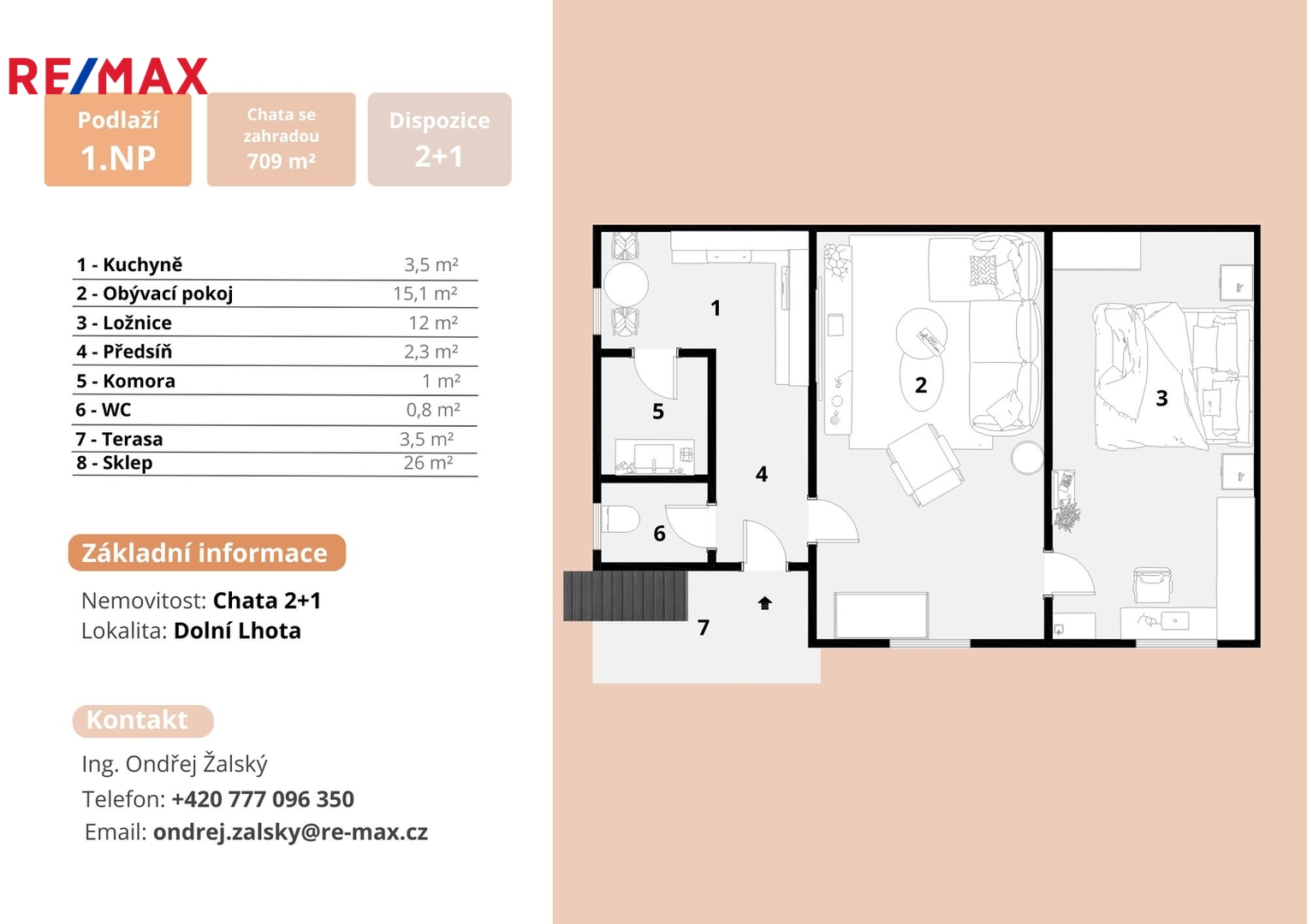 Zaujalo? Ani se vám nedivím, tohle je opravdu mimořádná příležitost. Jsem k dispozici na telefonu i e-mailu, projednáme detaily, dohodneme termín vaší prohlídky. Těším se na setkání.