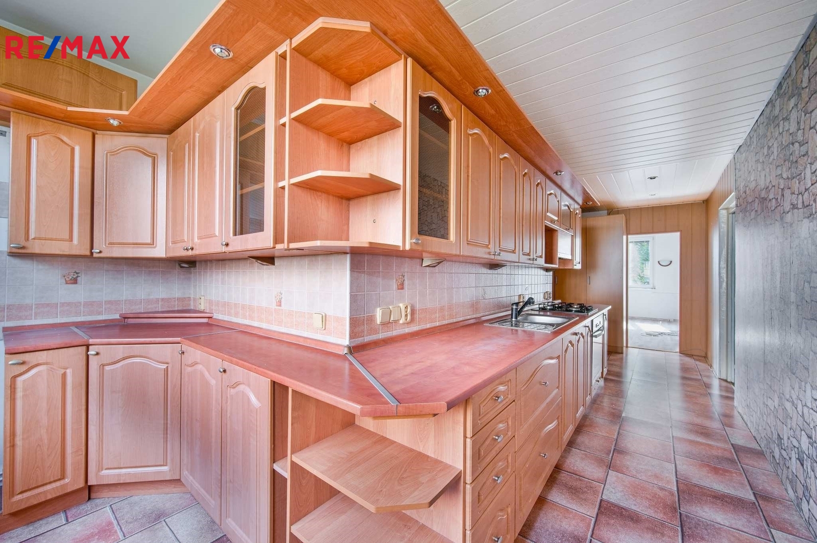 Dominantou bytu je prostorná kuchyně s kuchyňskou linkou vedenou po celém obvodu stěny, která poskytuje opravdu nadstandardní množství pracovního i úložného prostoru. Díky svému uspořádání je kuchyně nejen praktická, ale také velmi příjemná pro každodenní používání.