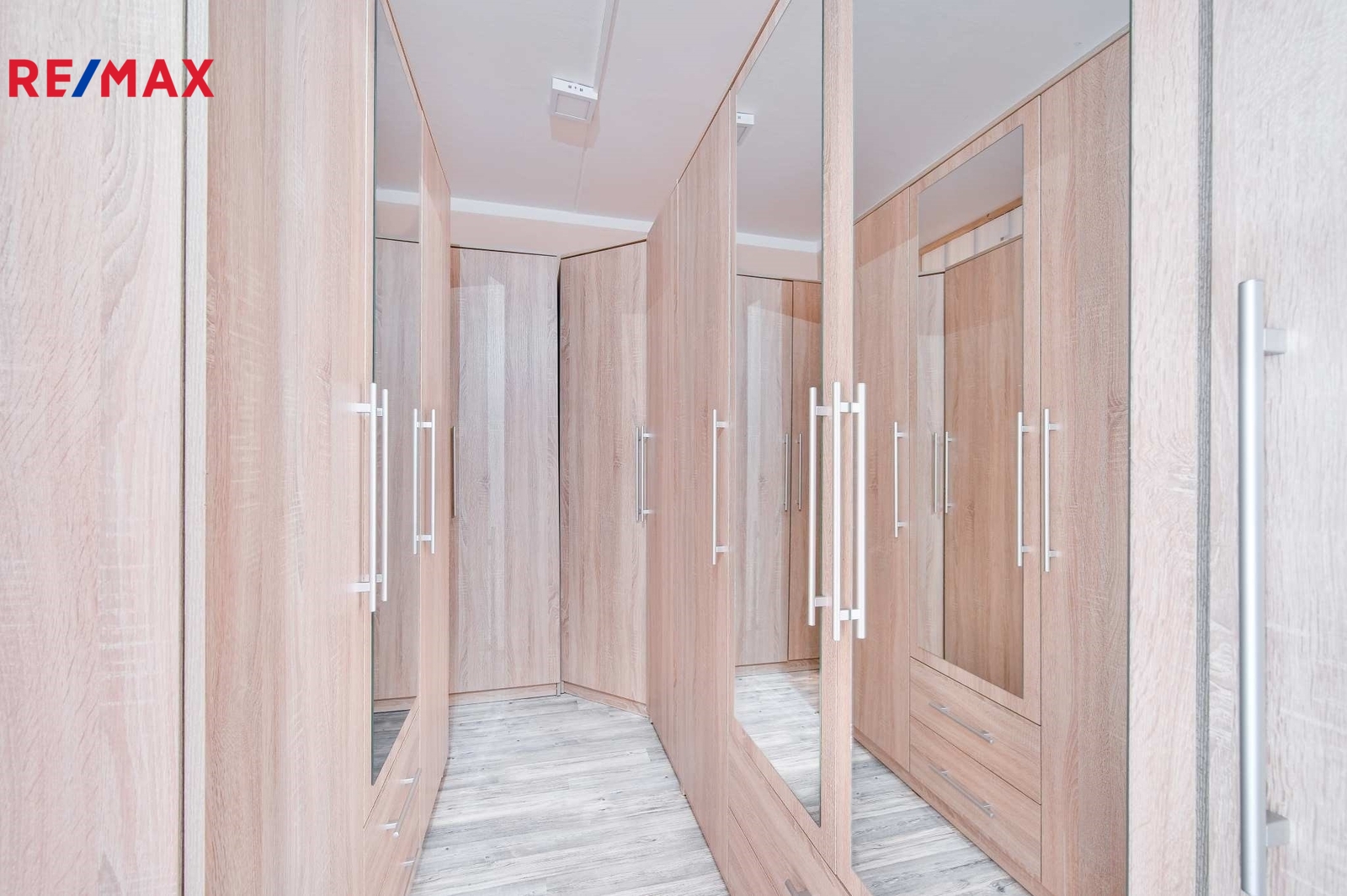 Velkým benefitem bytu je samostatná šatna, která byla prakticky vybudována z části většího pokoje a má vlastní vstup z předsíně. Další úložné prostory zajišťují vestavěné šatní skříně v předsíni.