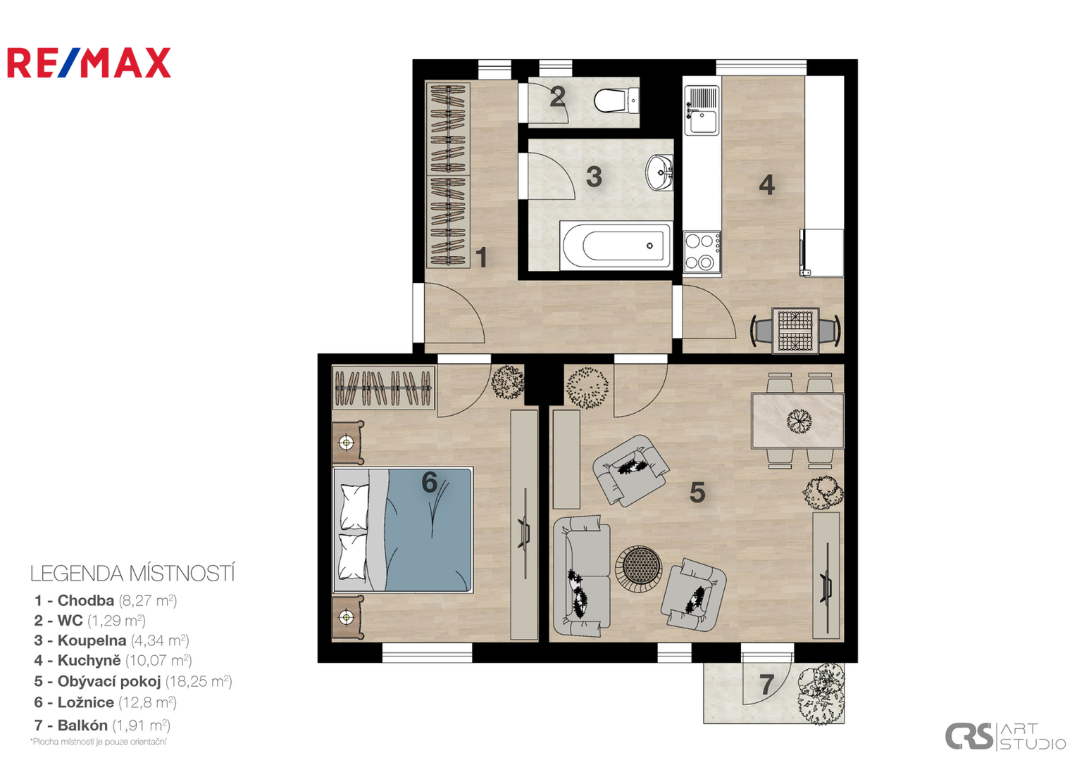 K prodeji je byt o dispozici 2+1 situovaný ve 2. patře cihlového domu s balkonem o velikosti 2 m² a celkovou obytnou plochou přes 60 m². Velkým benefitem jsou také dva prostorné sklepy – jeden o velikosti 12 m² a druhý 10 m², které nabídnou dostatek úložného prostoru nebo místo pro dílnu.
