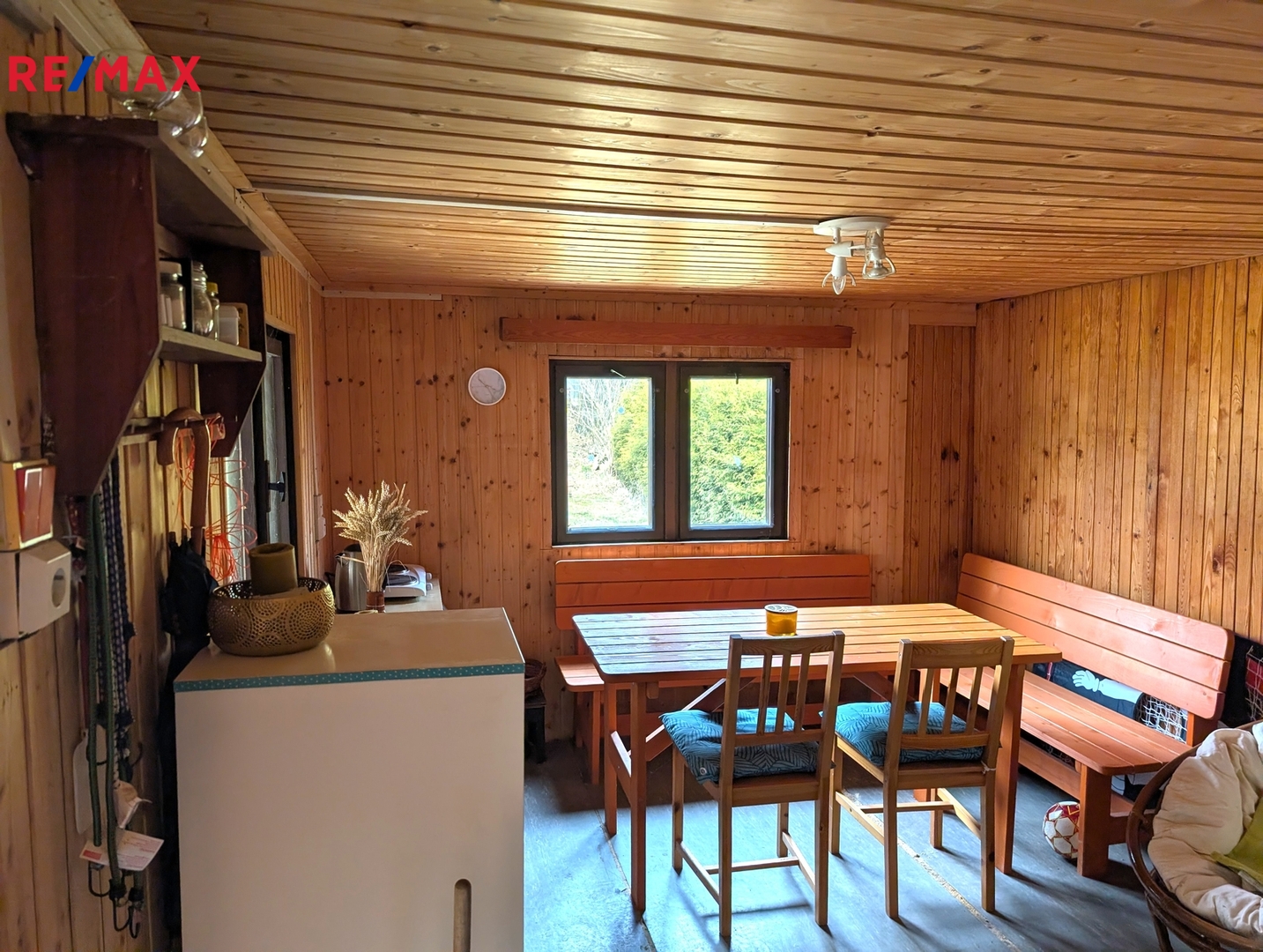 Chata o dispozicí 1+1 má celkovou užitnou plochou přibližně 28 m². V přízemí této dvoupodlažní rekreační stavby se nachází prostor vyhrazený pro kuchyň a obývací část, zatímco po dřevěných schodech se dostanete do podkroví, které slouží jako ložnice. Vedle chaty je také vstup do menšího sklípku, ideálního pro uskladnění různých potřebných věcí.