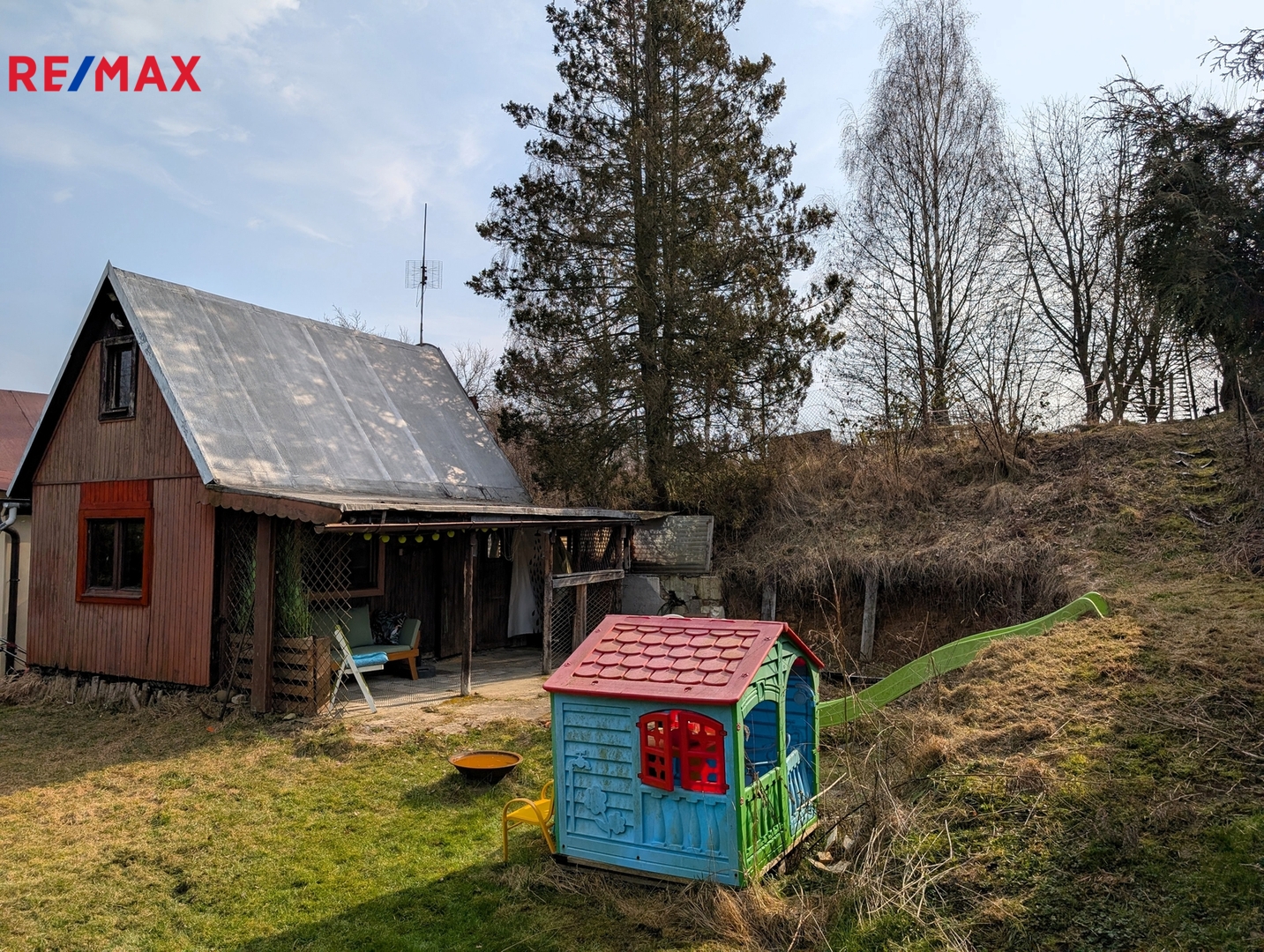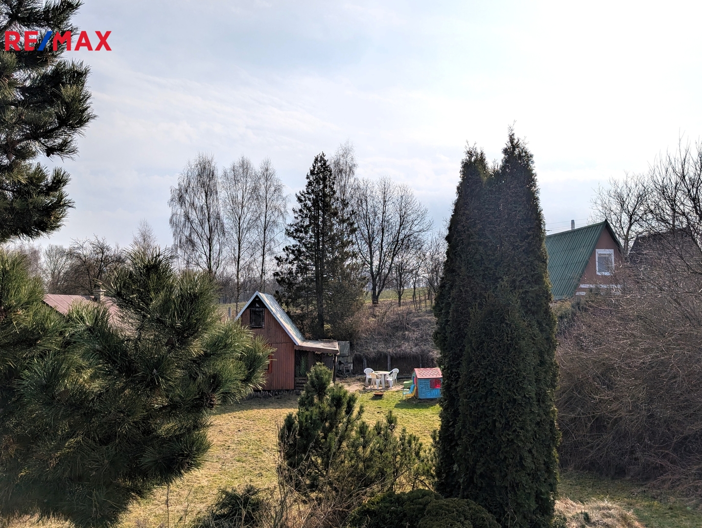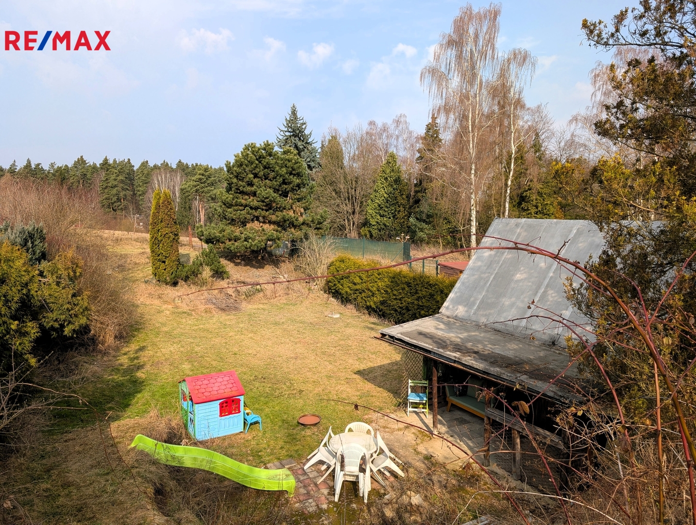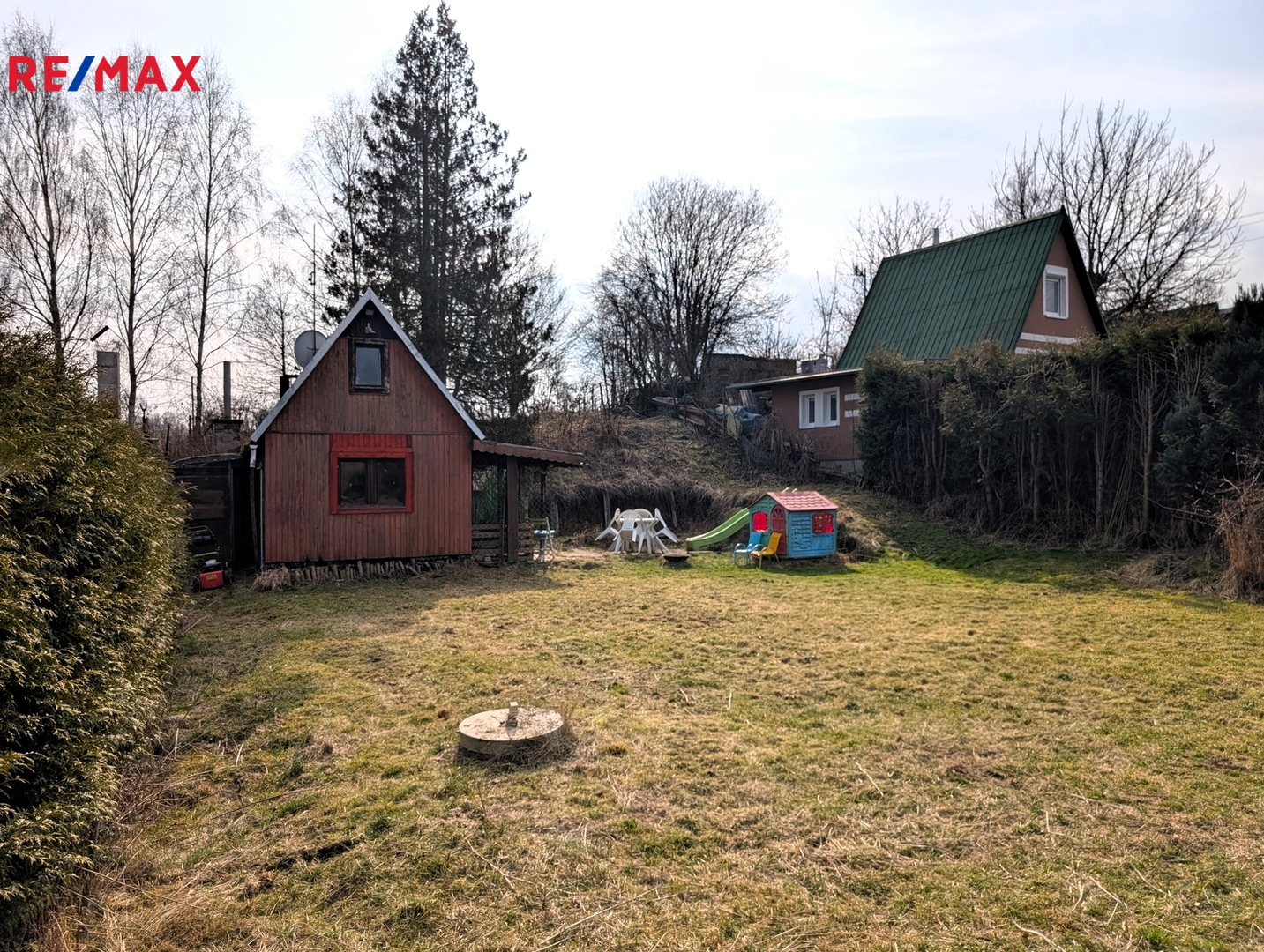 Okolo chaty se rozprostírá zahrada o velikosti 521 m², přičemž zastavěná plocha chaty činí 14 m². Parkování je umožněno přímo u chaty, což zajišťuje bezproblémový přístup.