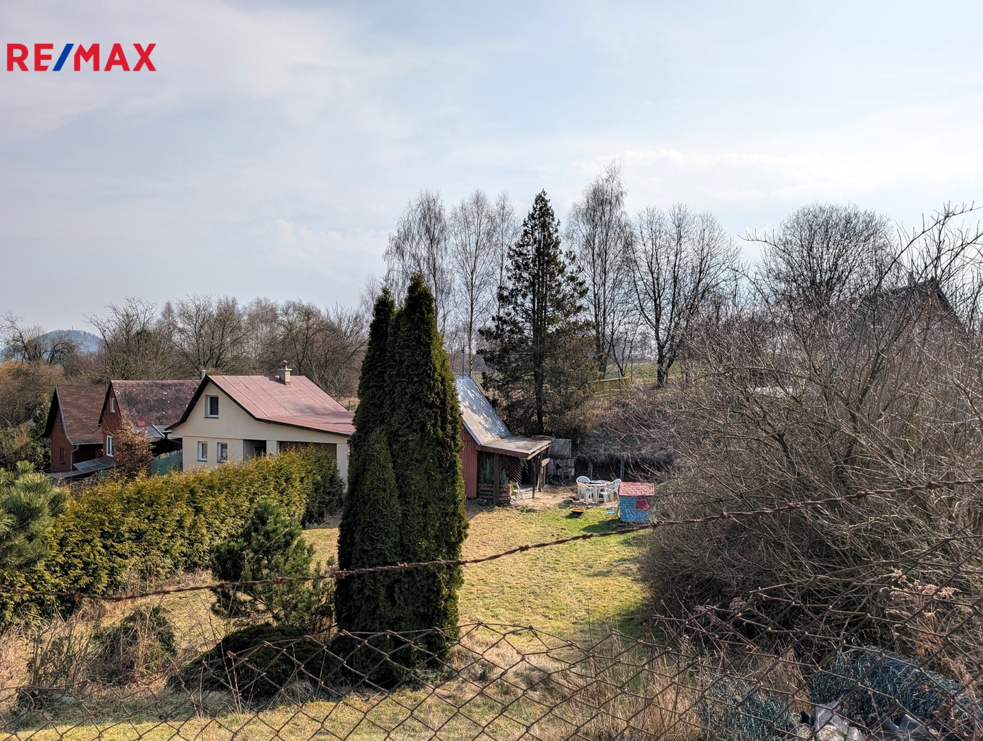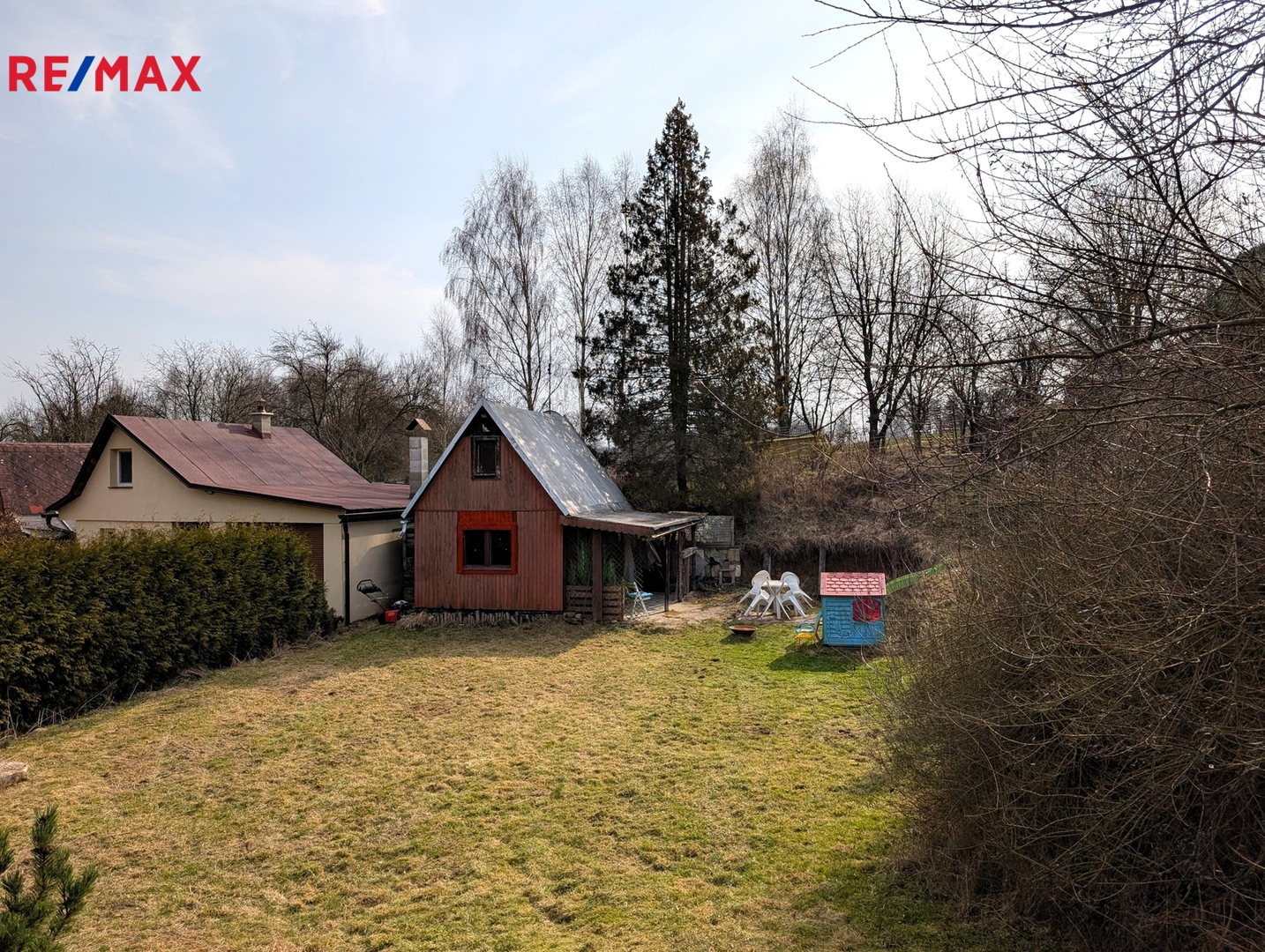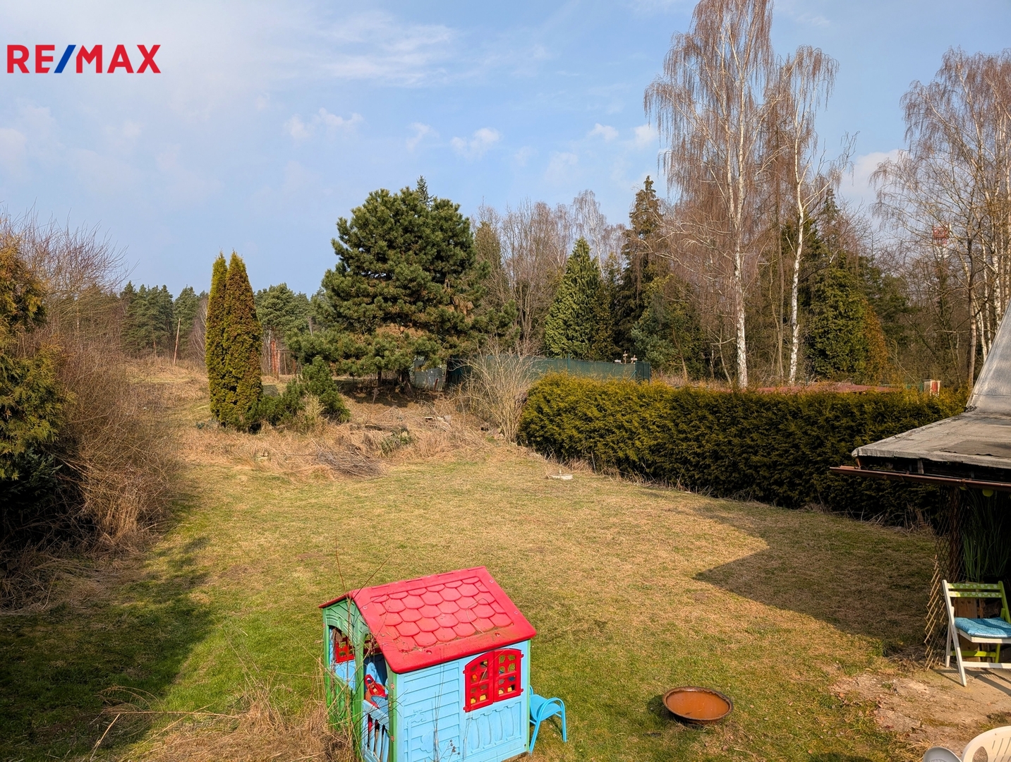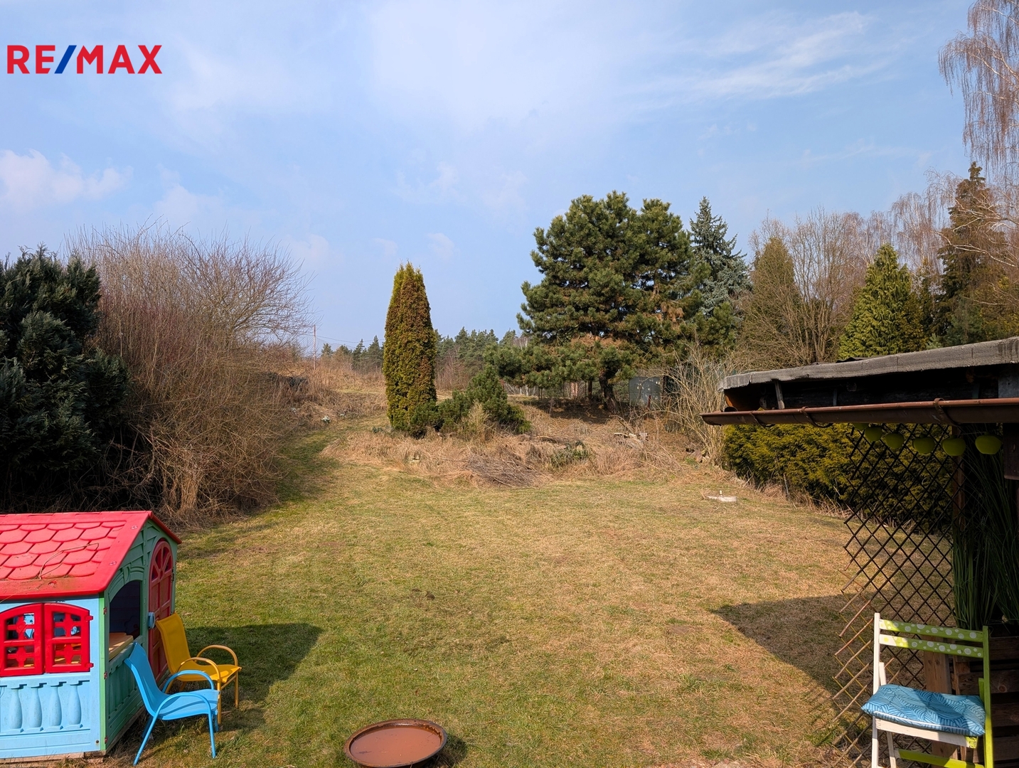 Okolo chaty se rozprostírá zahrada o velikosti 521 m², přičemž zastavěná plocha chaty činí 14 m². Parkování je umožněno přímo u chaty, což zajišťuje bezproblémový přístup.