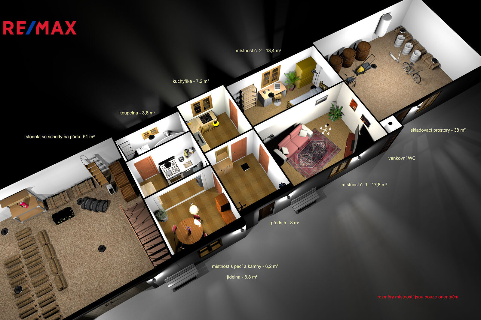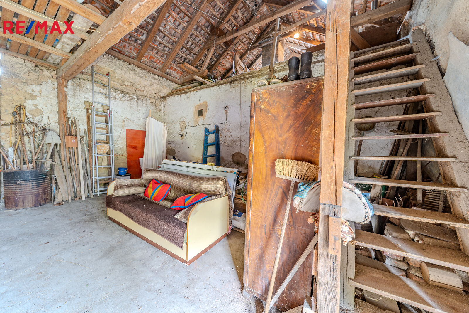 Na objekt navazuje stodola, kterou lze využít jako garáž nebo dílnu.