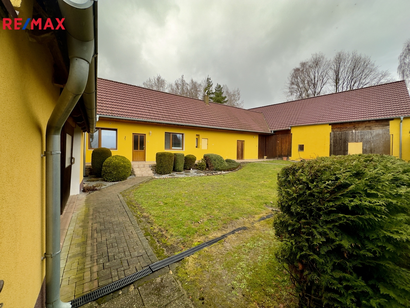 Nemovitost se zahradou o rozloze 975m2 má bytovou jednotku 3+1 s příslušenstvím, obývací prostory pro hosty, stodolu a velkou garáž.