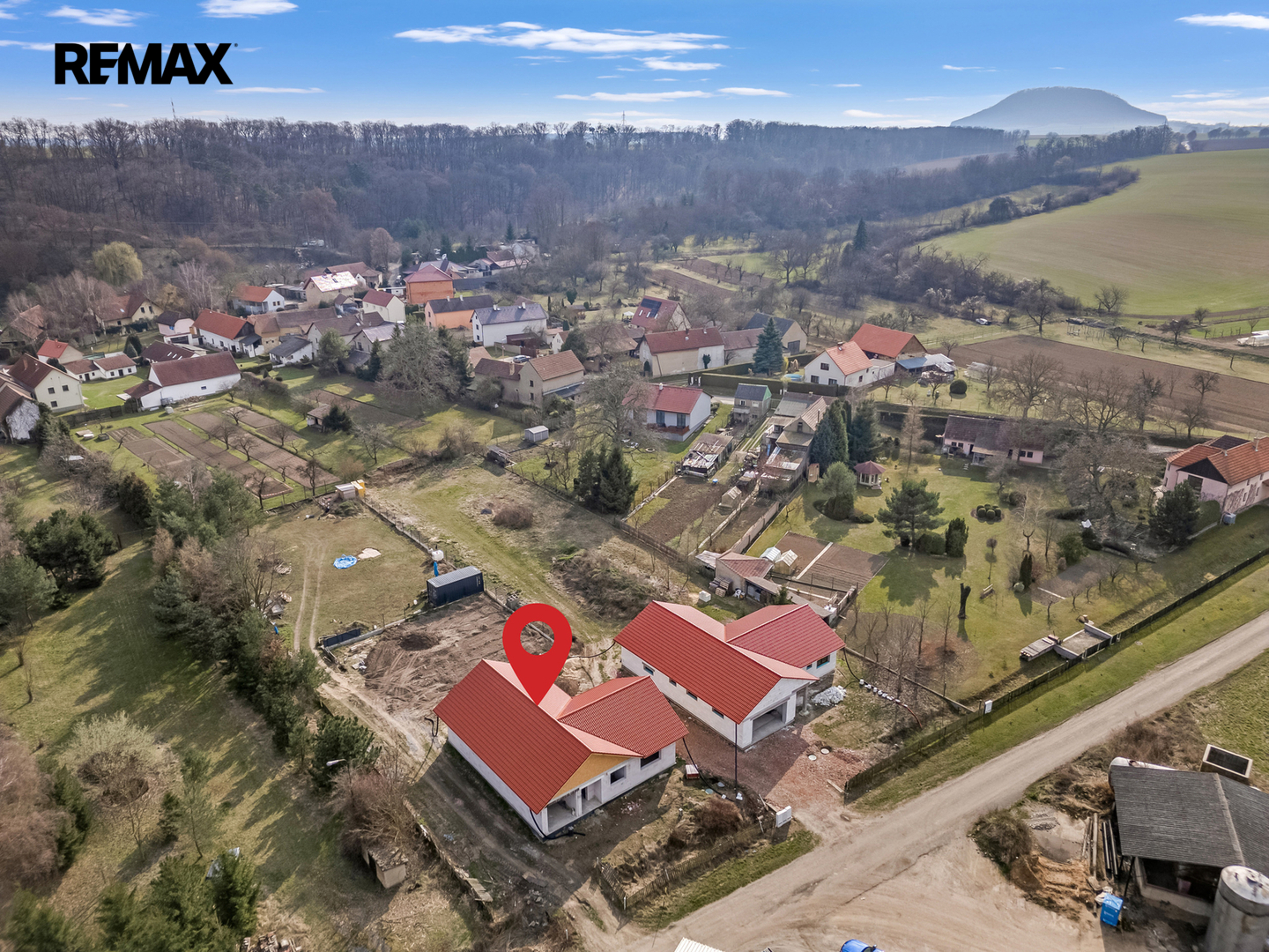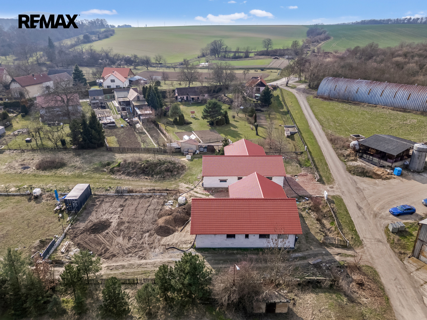 Prodej stavebního pozemku 914 m² s rozestavěným domem o dispozici 4KK – Bechlín