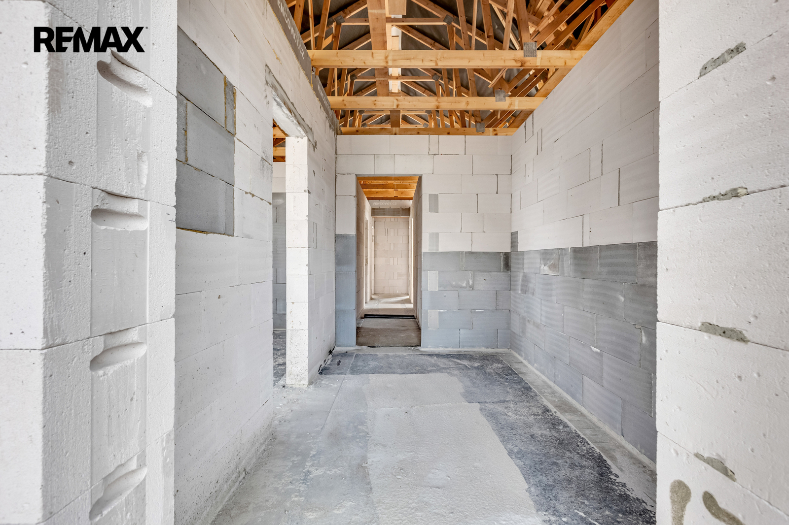 Dům se nachází ve fázi, kdy je již dokončena hrubá stavba – tedy ta nejnáročnější a finančně nejnákladnější část výstavby. Objekt je nově osazen okny, vstupními dveřmi a garážovými vraty, což umožňuje okamžité pokračování prací bez zdržení. K nemovitosti je k dispozici kompletní projektová dokumentace, která vám výrazně usnadní dokončení stavby dle vlastních představ a standardů.