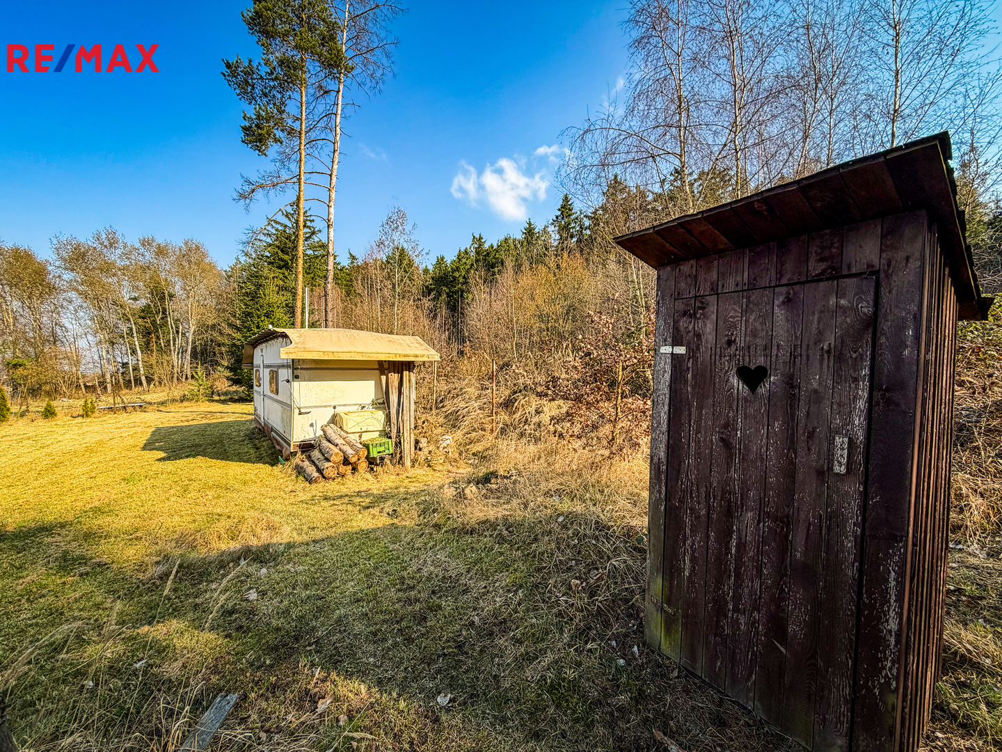 Na pozemku je umístěn karavan, který může sloužit jako zázemí při rekreačním využití. K dispozici je také kadibudka a studánka s vodou.