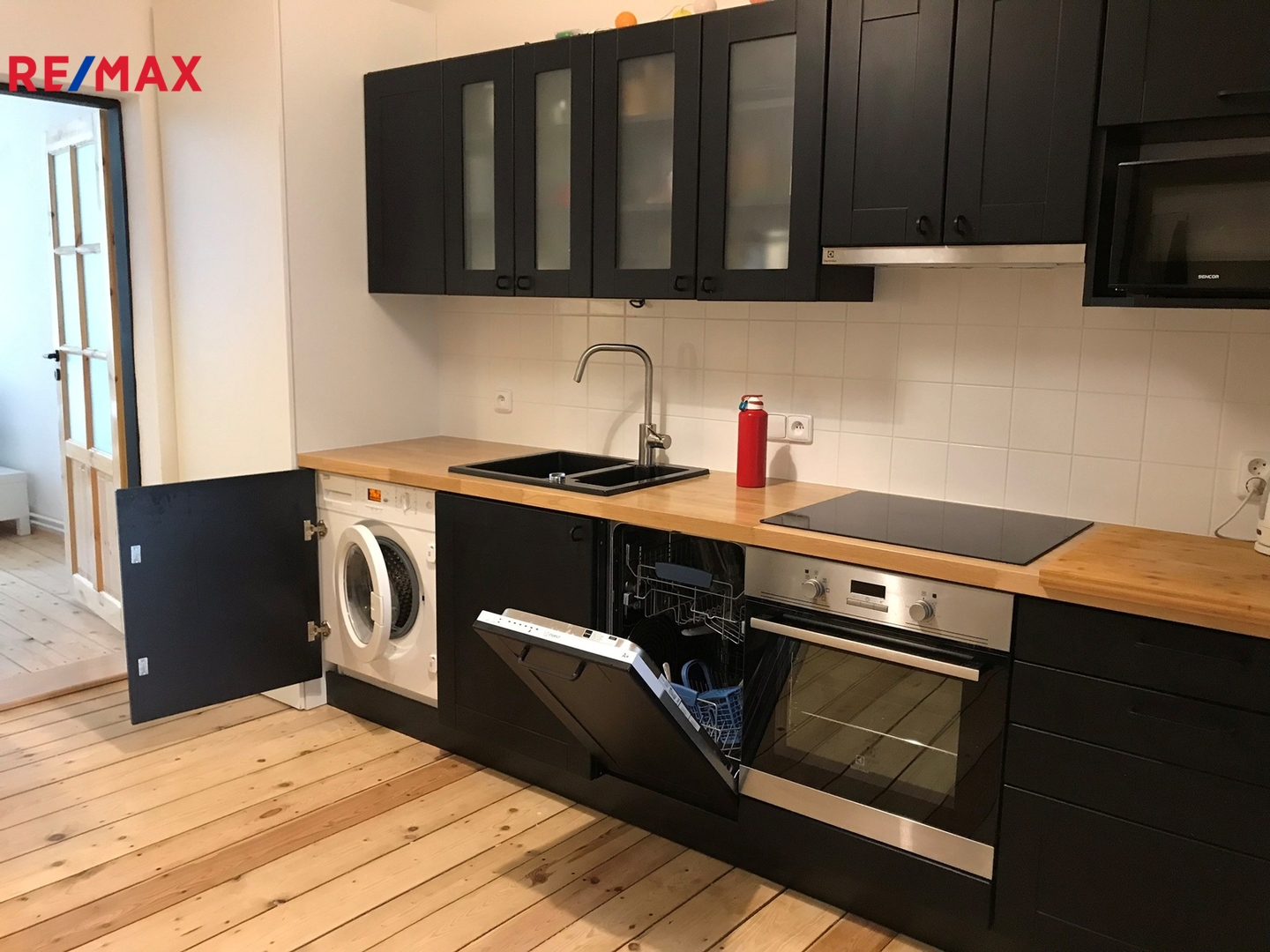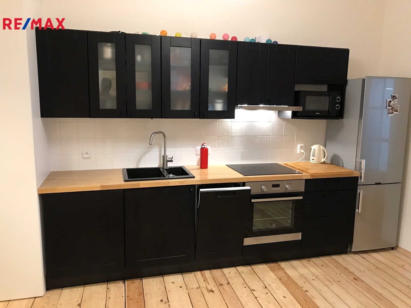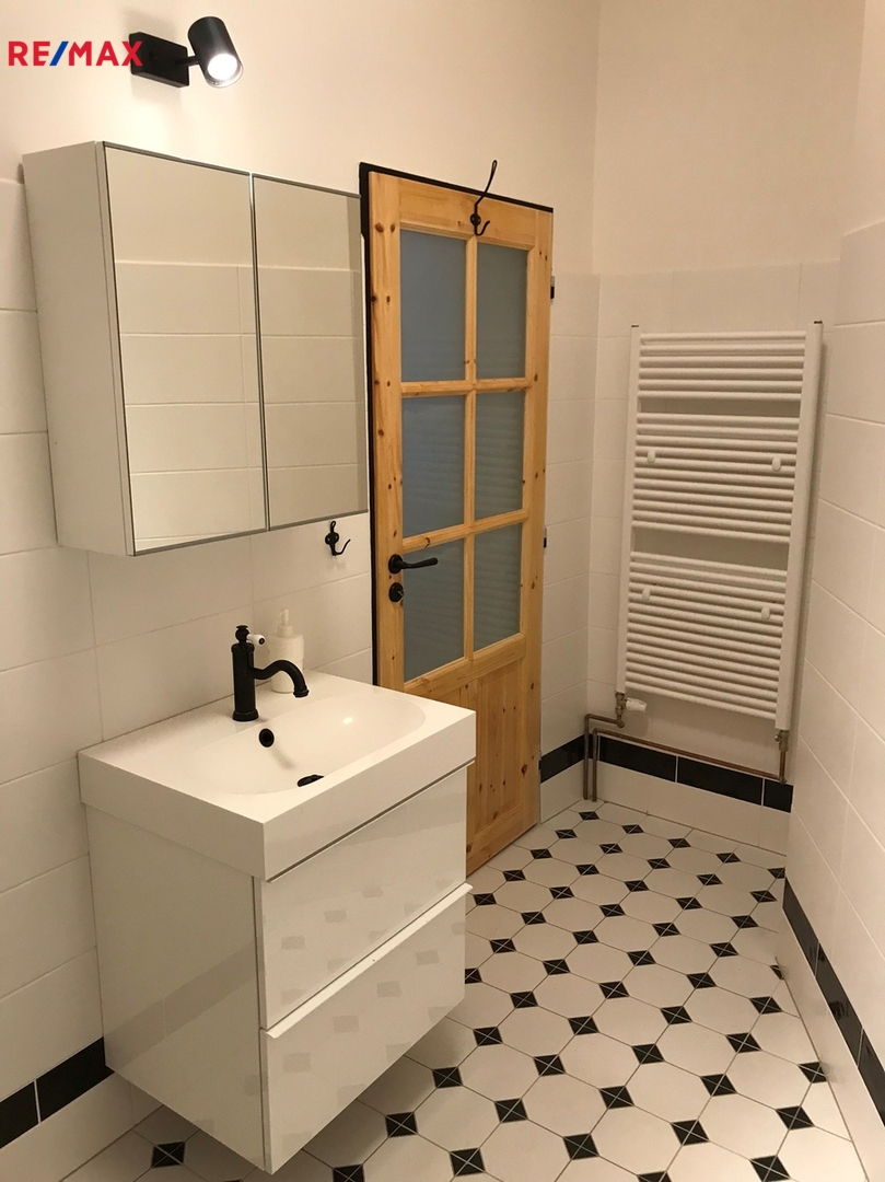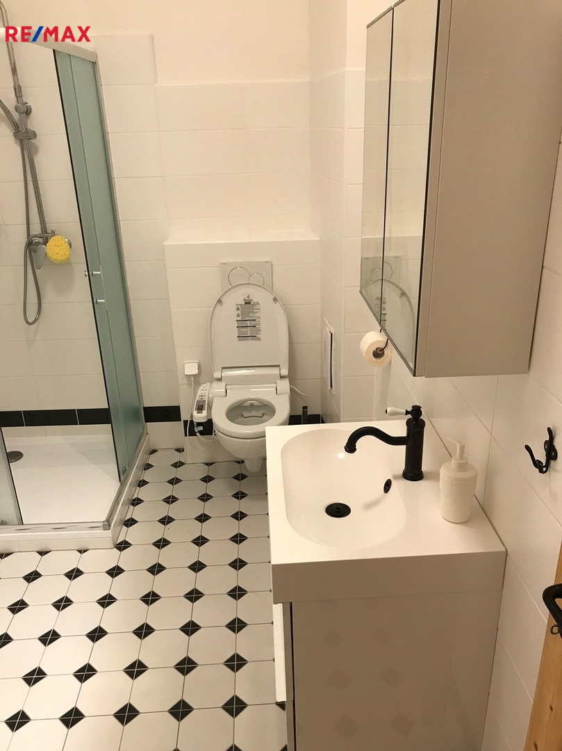 Byt je vybaven moderní kuchyňskou linkou, která zahrnuje myčku na nádobí, indukční varnou desku, ledničku i pračku, což výrazně usnadňuje každodenní péči o domácnost. Koupelna disponuje praktickým sprchovým koutem a je vyvedena v moderním stylu. V bytě jsou dvě okna, z nichž jedno směřuje do klidného vnitrobloku a druhé s výhledem na náměstí, což přináší dostatek přirozeného světla a příjemné ovzduší.