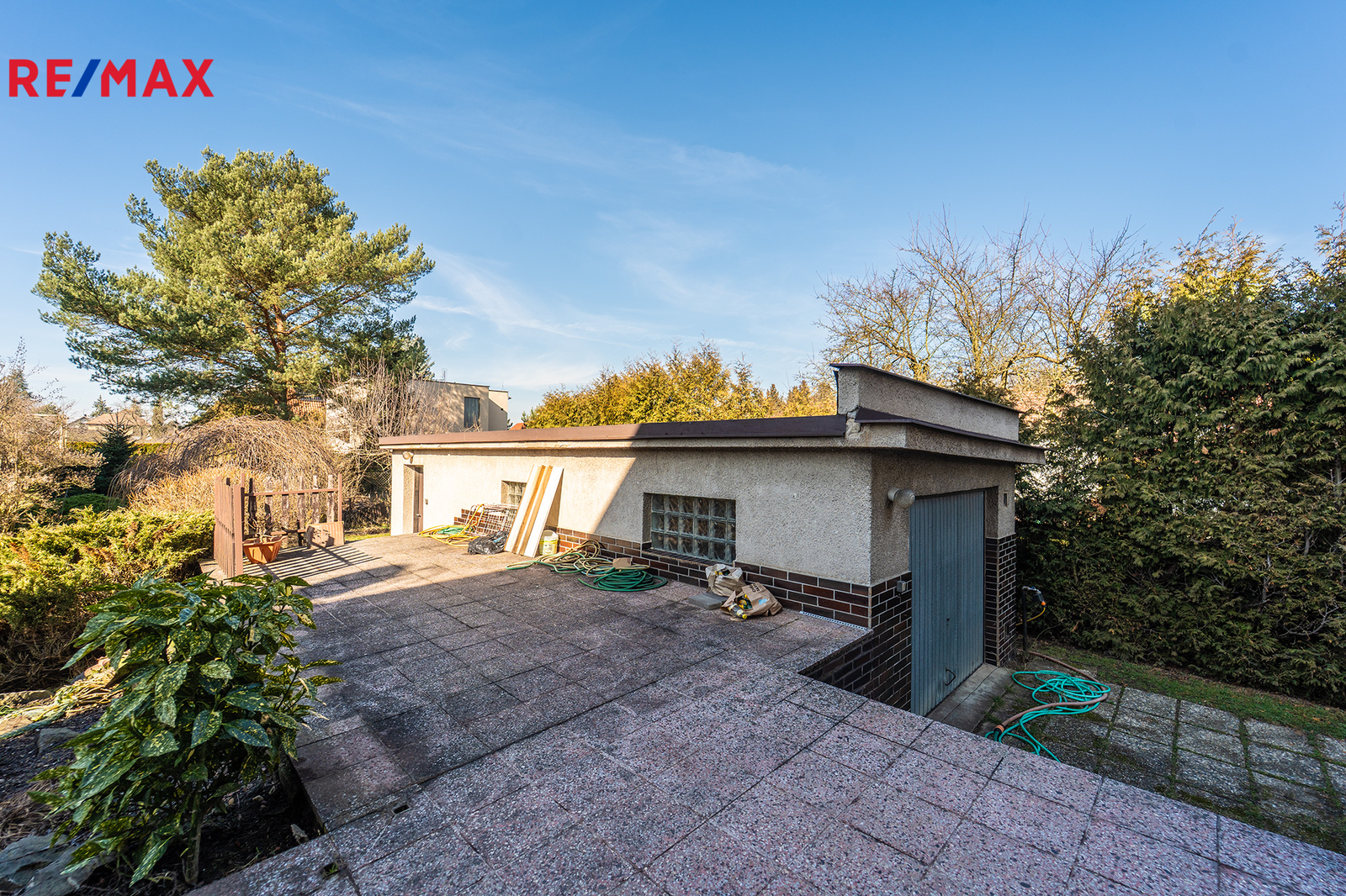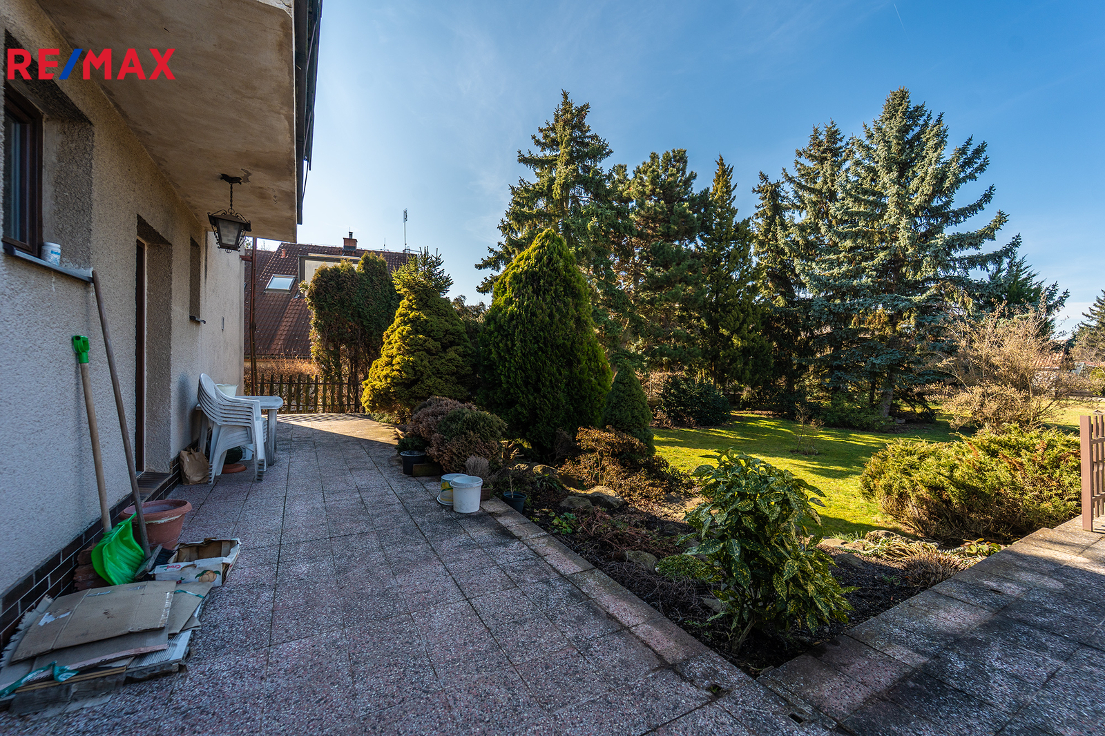 Dům je situován na velkorysém, kompletně oploceném pozemku se vzrostlými stromy, které vytvářejí příjemné soukromí a atmosféru zahrady. Kolem domu se nachází terasa vhodná pro posezení a relaxaci.