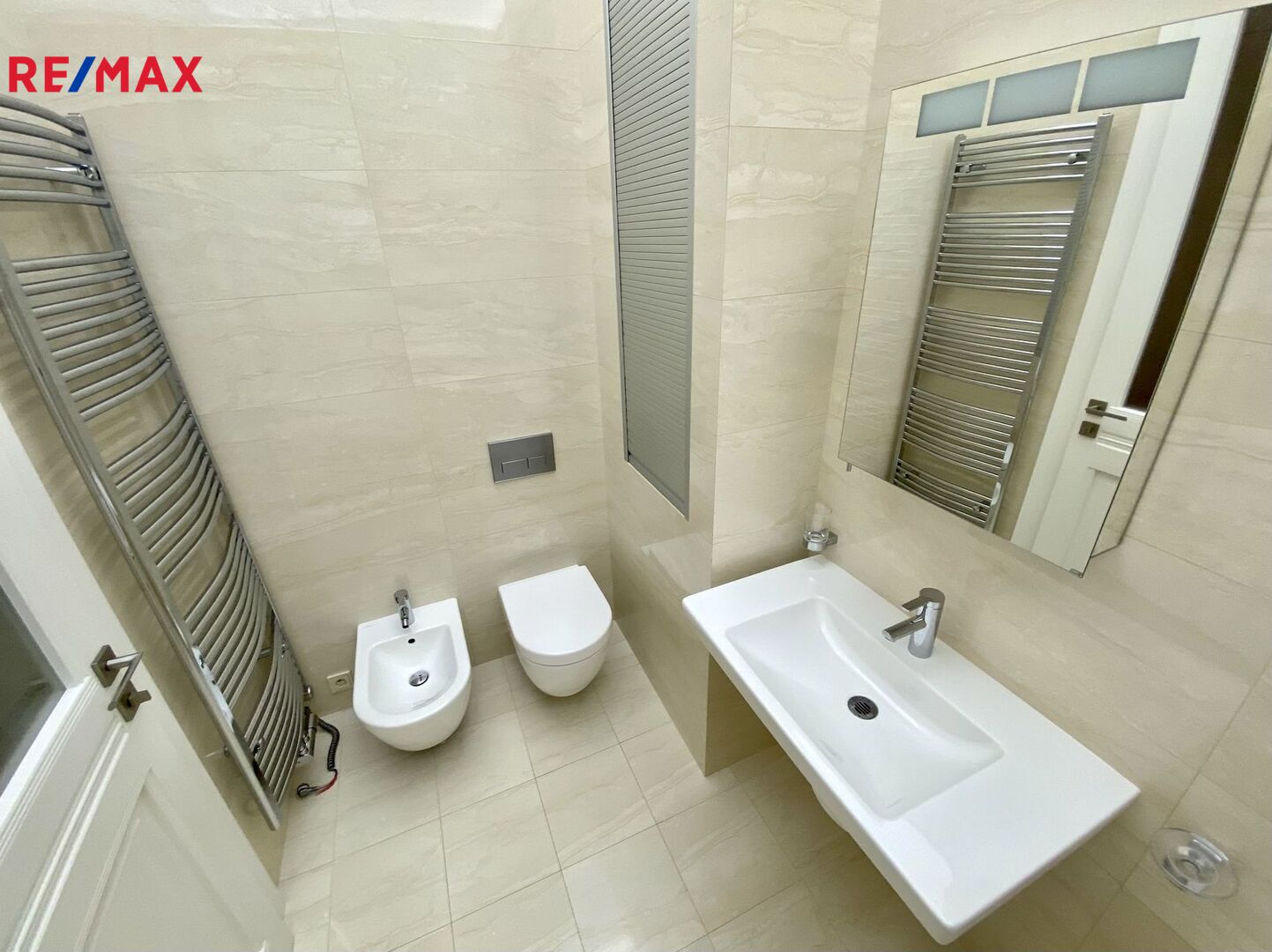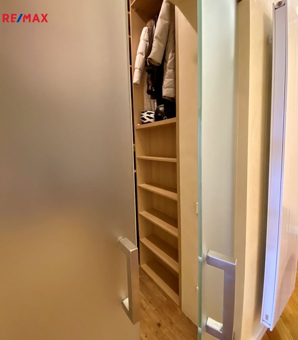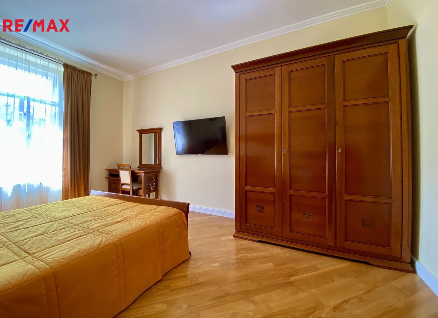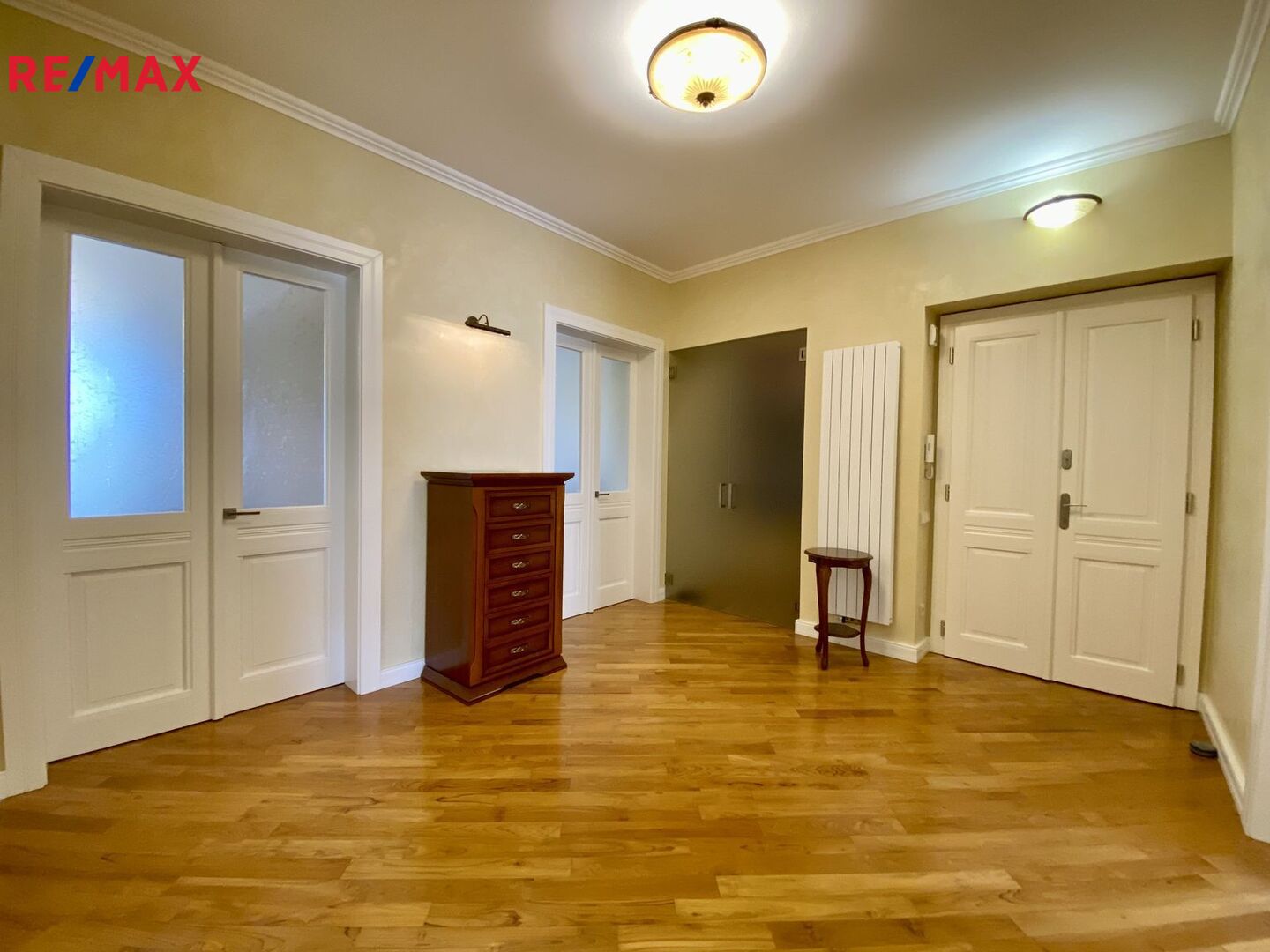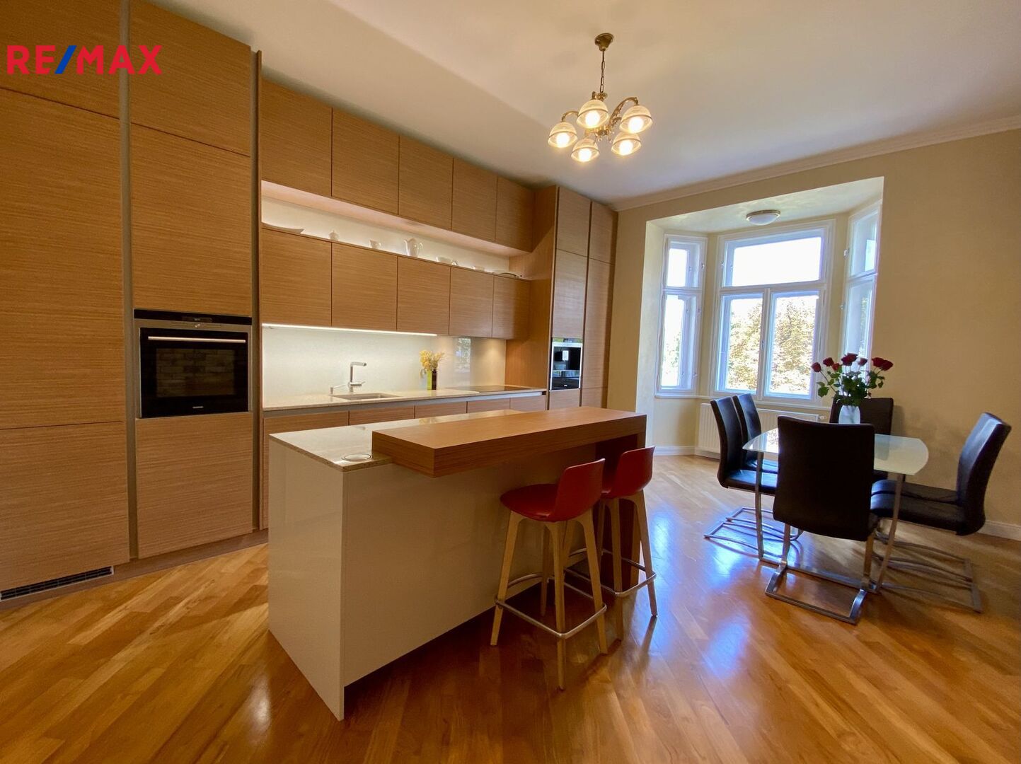 Byt je vybaven: luxusní kuchyňskou linkou s vestavěnými německými spotřebiči (lednička, mrazák, myčka, digestoř, trouba, indukční varná deska, kávovar) a kvalitní nábytek z masivního dřeva v celém bytě.