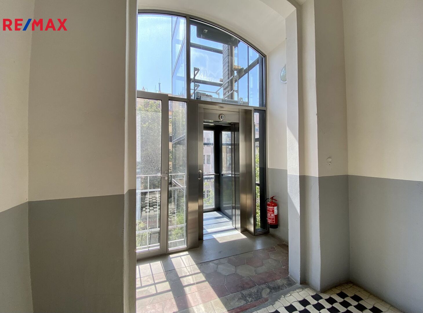 Dům je po rekonstrukci a má nový prosklený výtah.