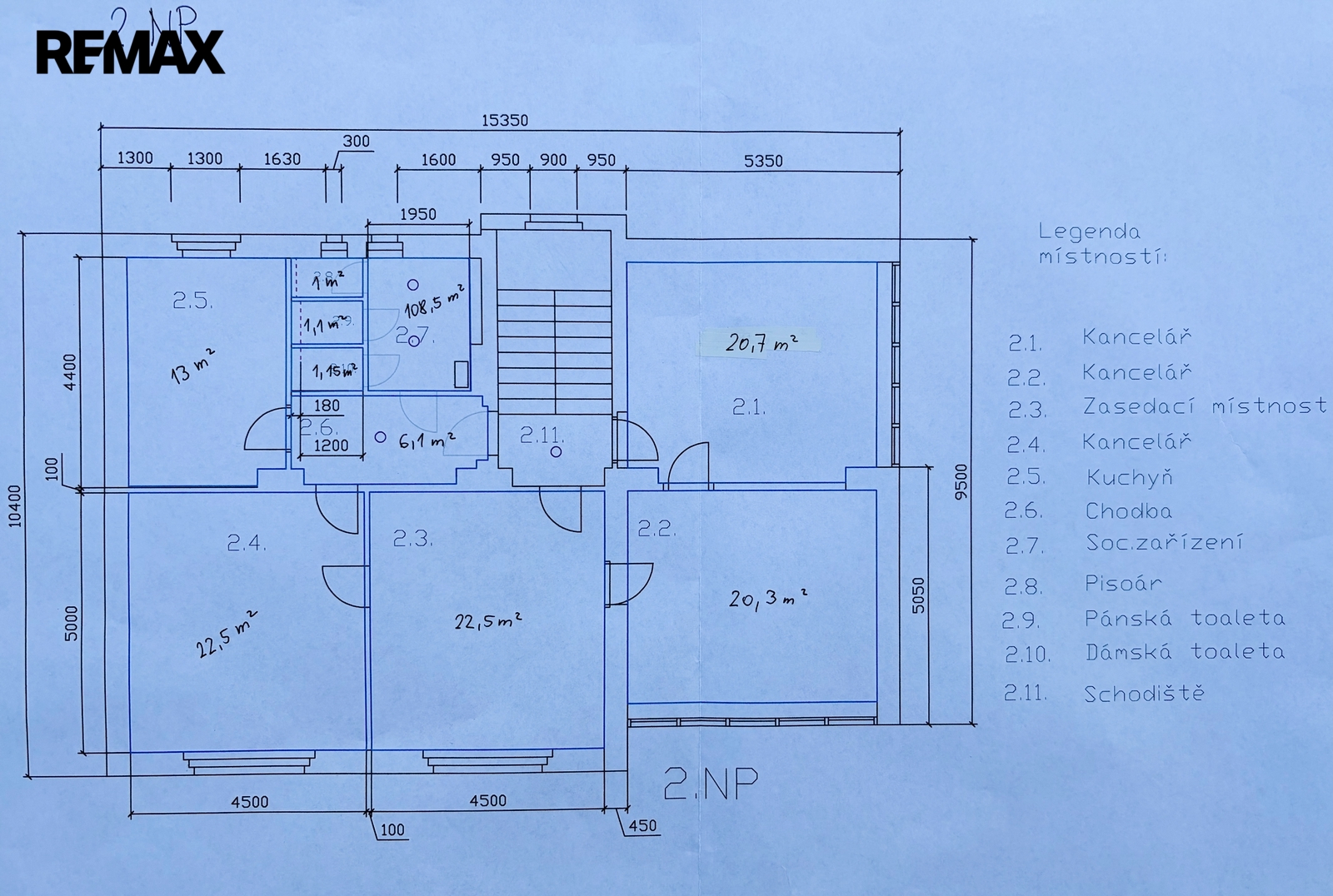 - Sociální zázemí: sprcha, 2× WC a pisoár