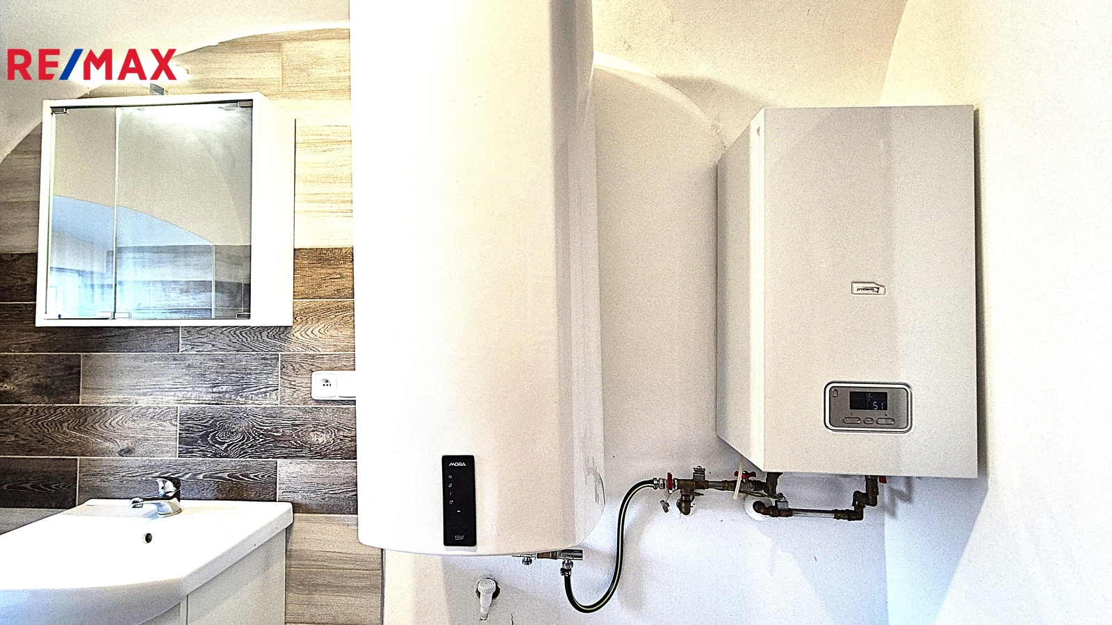 Byt je vytápěn elektrokotlem a k dispozici jsou také nádherná stylová kachlová kamna, která se k tomuto typu bydlení skvěle hodí a v zimních měsících dokážou vytvořit velmi příjemnou atmosféru. Teplou vodu zajišťuje elektrický bojler. Kuchyňská linka je téměř jako nová a je vybavena vestavěnými elektrickými kamny a troubou. Okna jsou bílá plastová. Podlahy v celém bytě jsou vinylové, pouze v koupelně je položena keramická dlažba. V koupelně je vana a topný žebřík, který je umístěn nejen v koupelně, ale také na chodbě. Byt nabízí dostatek prostoru a zároveň velký potenciál pro vlastní zařízení a vytvoření útulného domova.