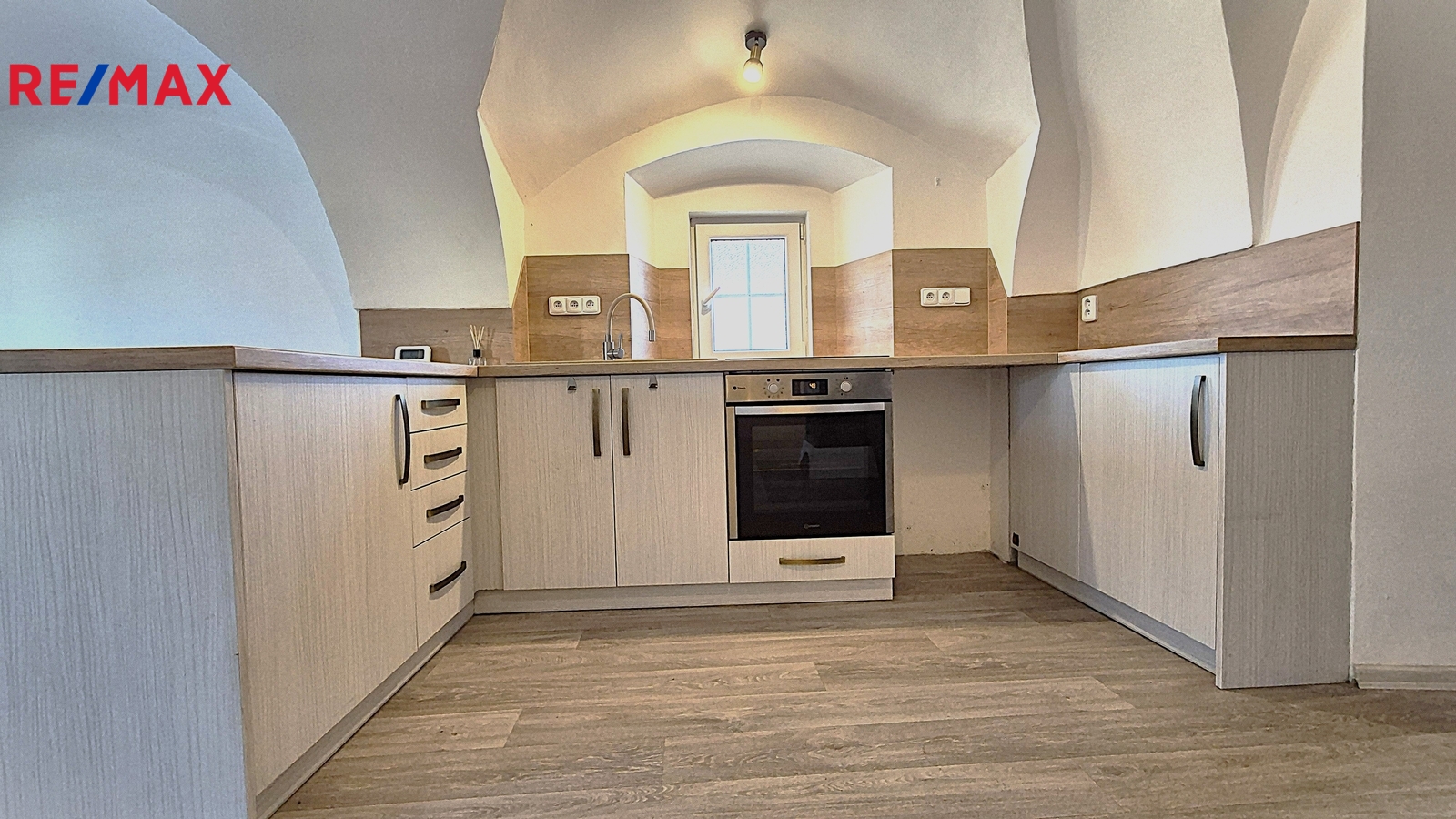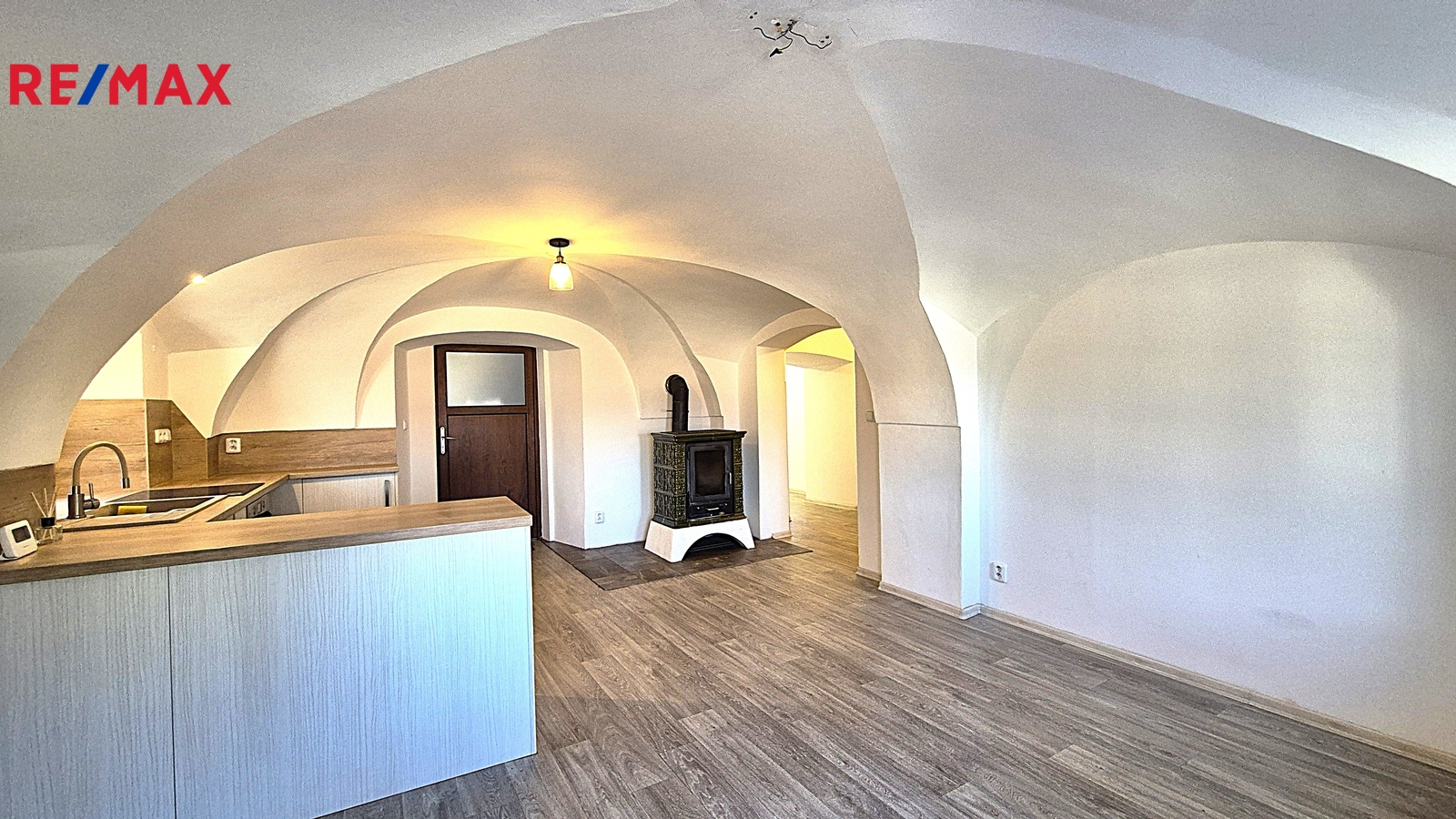 Velkou předností bytu je jeho atmosféra. Interiér s klenutými stěnami dodává prostoru jedinečný charakter a vytváří velmi příjemné a útulné prostředí pro bydlení. Byt je celkově velmi pěkný, čistý a prošel rekonstrukcí.