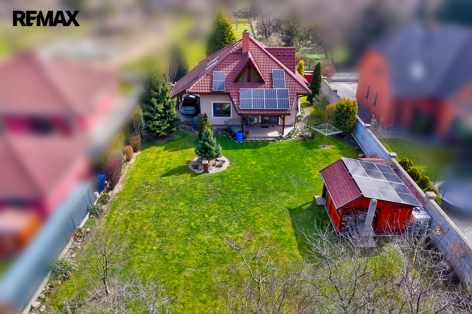 Velkým benefitem domu je kombinace vytápění – k dispozici jsou krbová kamna, která vytváří příjemnou atmosféru a zároveň pomáhají s vytápěním, dále kondenzační kotel jako hlavní zdroj tepla a v koupelně podlahové vytápění, které zajišťuje maximální komfort zejména v zimních měsících. Další výhodou je instalovaná fotovoltaická elektrárna, která přispívá k úspoře nákladů na provoz domácnosti. Na pozemku je k dispozici parkovací stání s možností nabíjení elektromobilu.