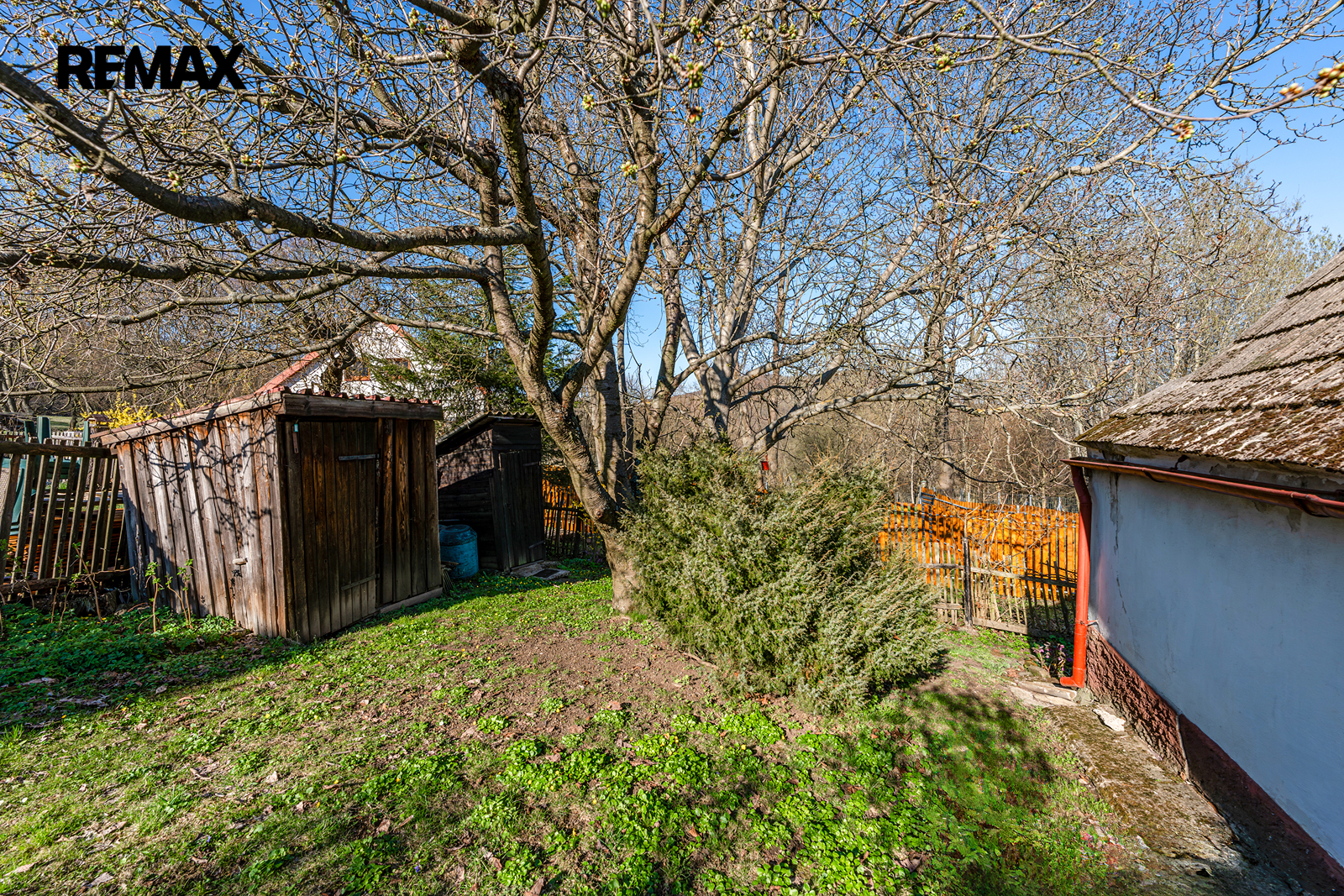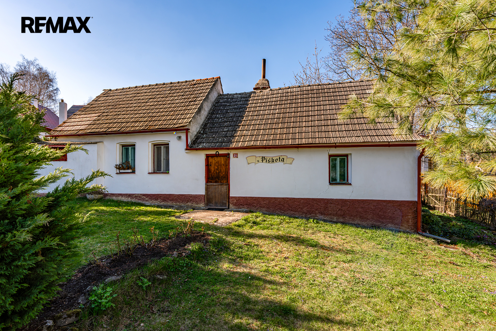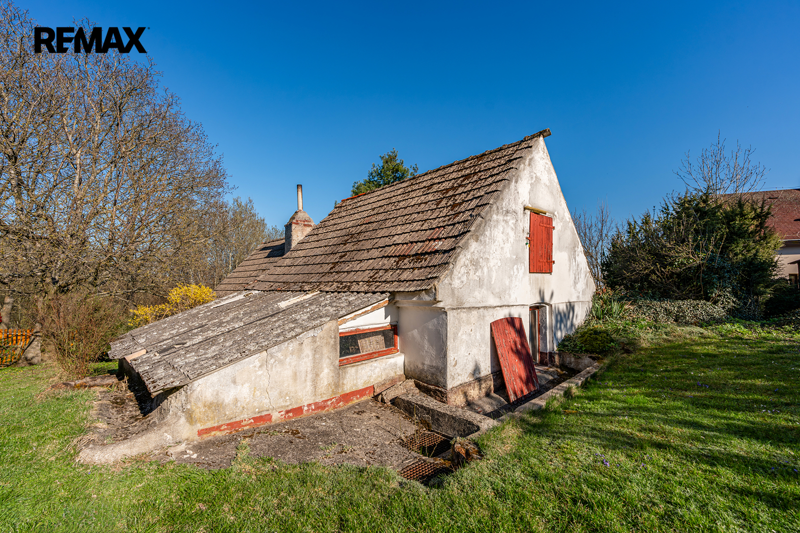 Přístavky: K domu přiléhá historicky zděný dřevník, samostatná dřevěná garáž a kůlna na nářadí.