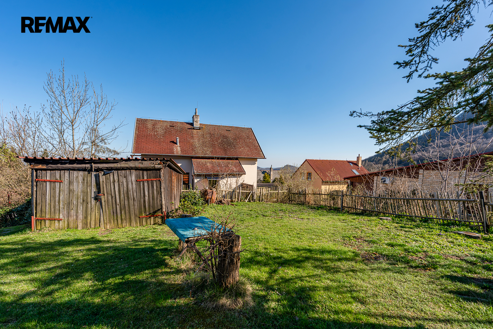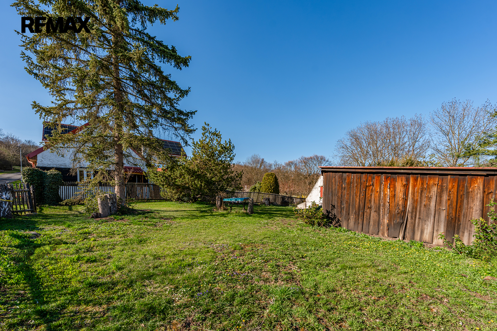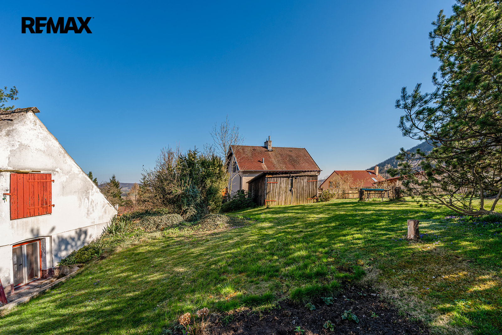 Přístavky: K domu přiléhá historicky zděný dřevník, samostatná dřevěná garáž a kůlna na nářadí.