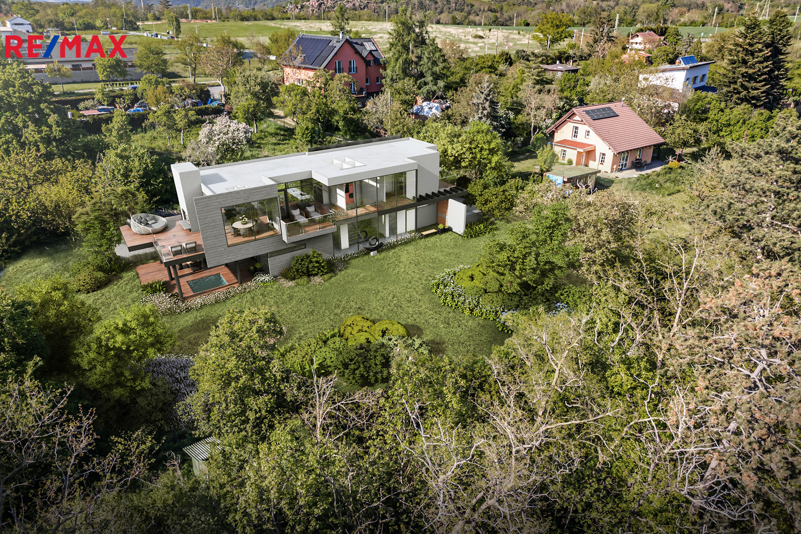 Celý soubor těchto pozemků je oplocený a náleží k nim příjezdová cesta o výměře 268 m2, je možno ji využívat na základě věcného břemene užívání, případně lze vyřešit prodejem. Co se týká inženýrských sítí, je zde kanalizace, vodovod a elektřina. Na pozemku se nachází 70 m vrt na vodu. K dispozici je stavební povolení, minimální rozměrový požadavek v této lokalitě na jednu stavbu je 800 m2. Za dodatečnou úplatu vám můžeme nabídnout také exkluzivní projekt na výstavbu rodinného domu včetně veškeré prováděcí dokumentace.