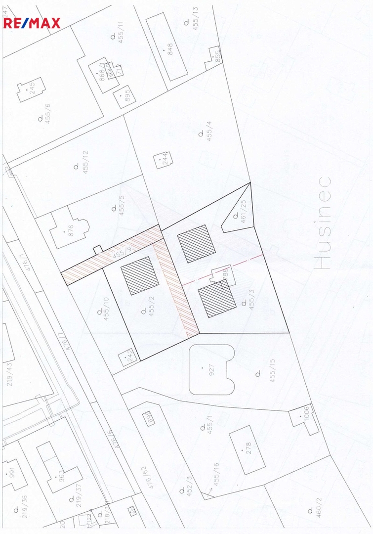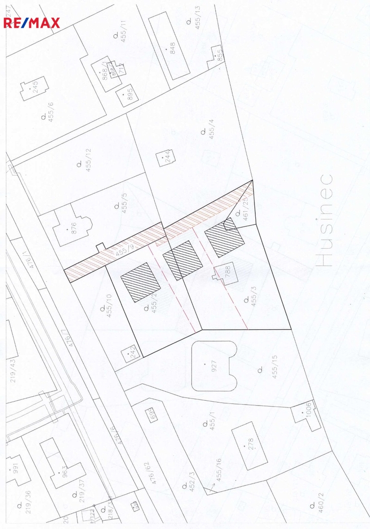 Soubor pozemků je připraven k rozdělení na tři samostatné pozemky pro výstavbu tří rodinných domů, každý se třemi bytovými jednotkami.