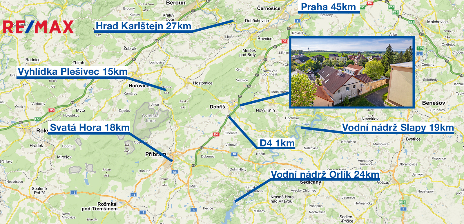 Klidná část Dobříše, kousek od centra, s veškerou občanskou vybaveností na dosah ruky. Okolní příroda je ideálním místem pro odpočinek i aktivní trávení času.