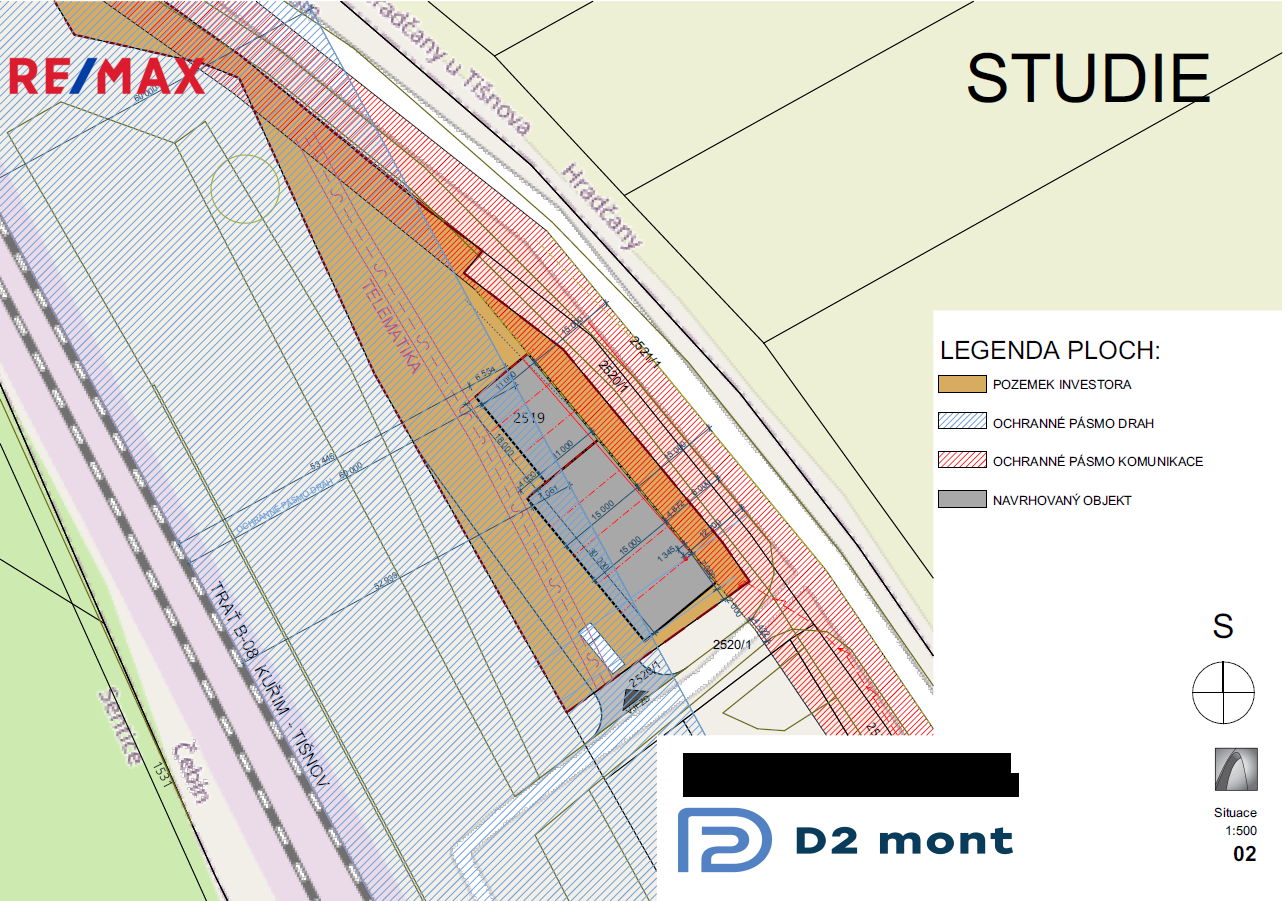 Pro pozemek byly zpracovány projektové studie haly a k dispozici je také dokumentace s vyjádřeními dotčených orgánů, která může novému majiteli usnadnit přípravu vlastního podnikatelského záměru.
