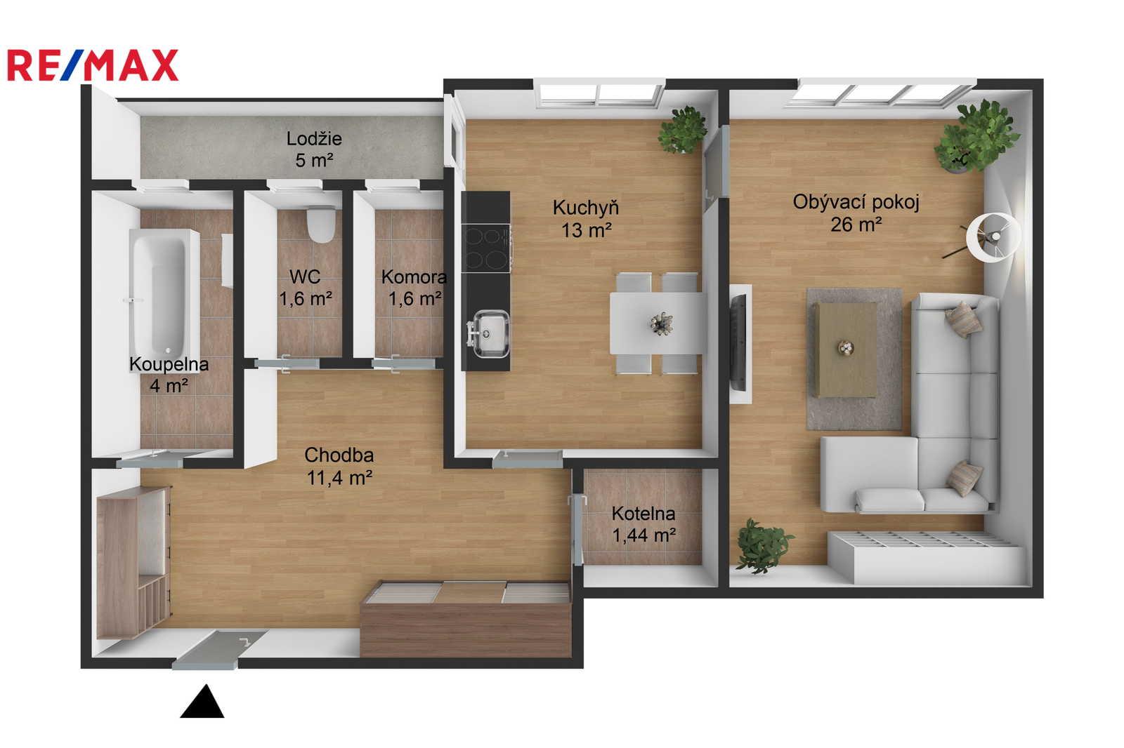 Velkým benefitem bytu je jeho výměra a dispozice. Už při vstupu zaujme prostornou vstupní chodbou o velikosti přes 11m2. I kuchyně se svými 13m2 a vstupem přímo na lodžii nabídne novému majiteli spoustu možností. Přes kuchyň se dostáváme do hlavní obývací místnosti o výměře 26m2, kterou lze v případě potřeby rozdělit na dva pokoje a změnit tak bytu dispozici na příjemnou 2+1 / 2kk. V tuto chvíli samostatná koupelna a toaleta, taktéž nabízí možnost řešit například spojením a zvětšení celé koupelny. Součástí prodeje je i prostorný sklep 7m2.