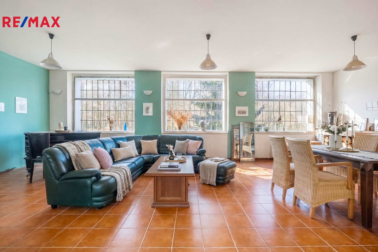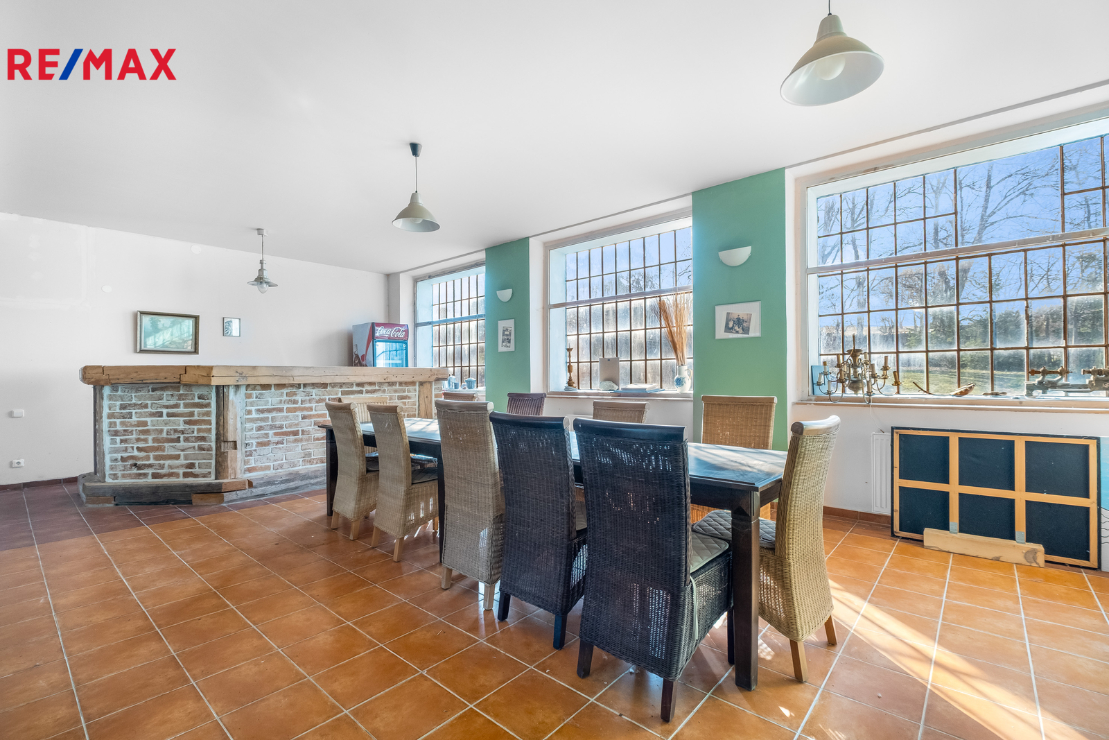 Zrekonstruovaná část nabízí sedm pokojů, každý s vlastní koupelnou, prostornou kuchyni a členitou obývací část s terasou, ze které se otevírá výhled přímo na zahradu a řeku, která pozemkem protéká. Celkem 440 m² užitné plochy na pozemku přes 16 608 m².