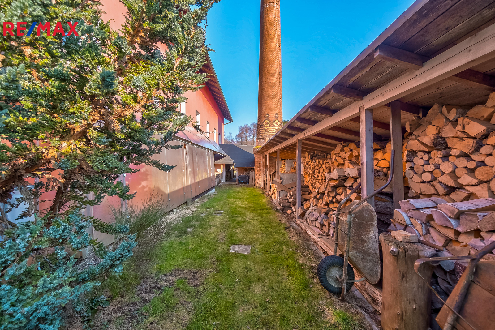 Druhá část objektu — původně továrna na perleťové knoflíky s několika apartmány a sálem — prostor, který si uděláte přesně podle sebe. Svatby, firemní akce, eventy, ateliér — nebo kombinace všeho.