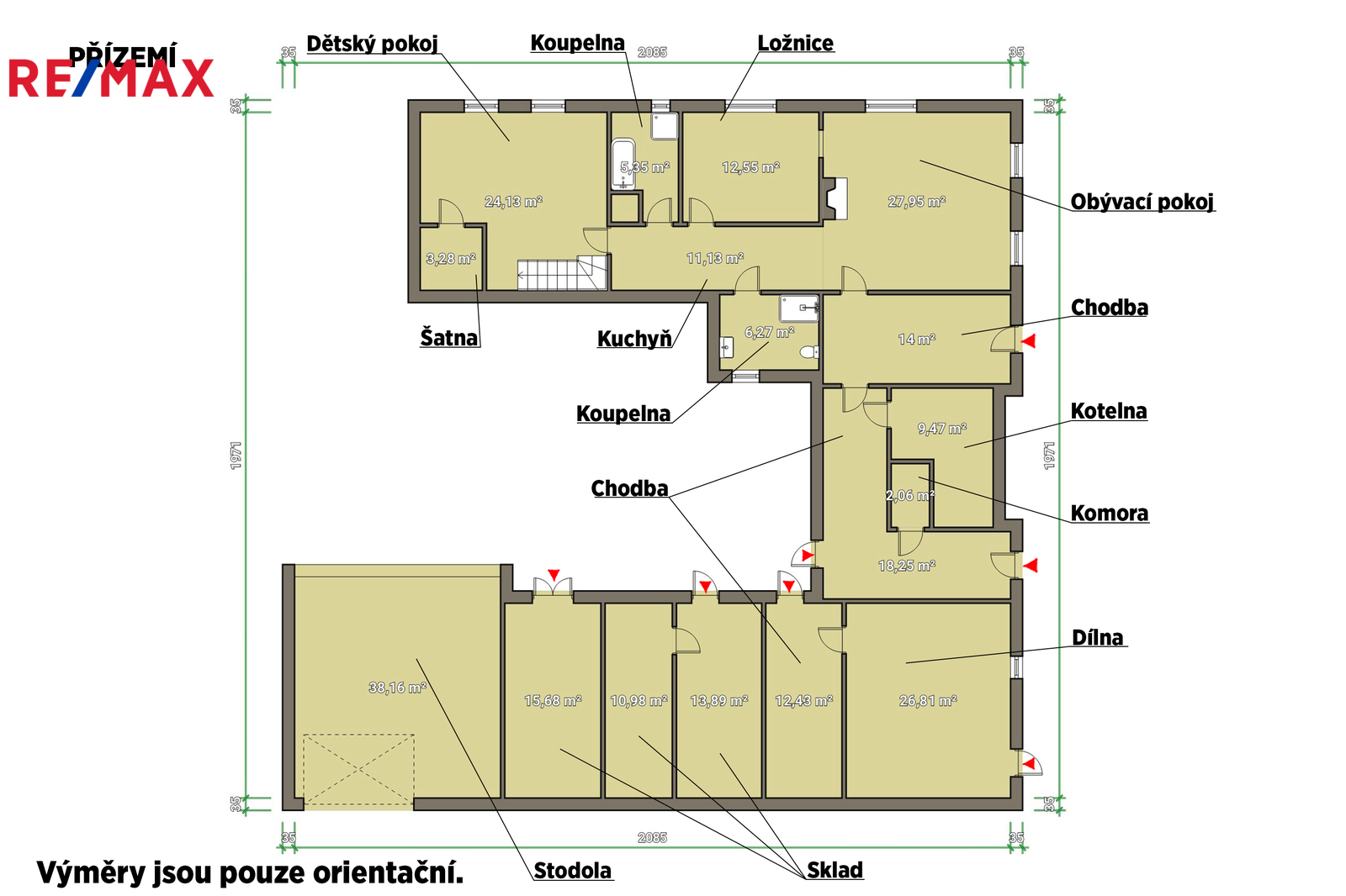 Nemovitost je částečně zrekonstruovaná, nabízí 2 koupelny a spoustu dalšího prostoru, aktuální obyvatelnou dispozici 3+kk, přičemž patro je vhodné k vestavbě dalších obytných prostor.