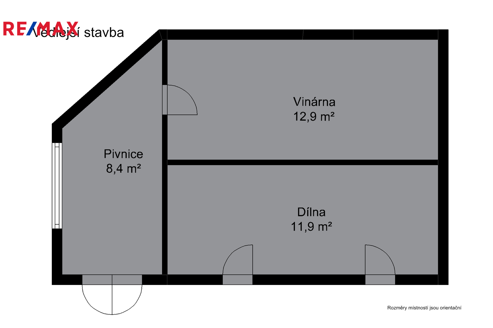 Na pozemku se nachází vedlejší stavba s dílnou (12 m²), pivnicí (8 m²) a vinárnou (13 m²).