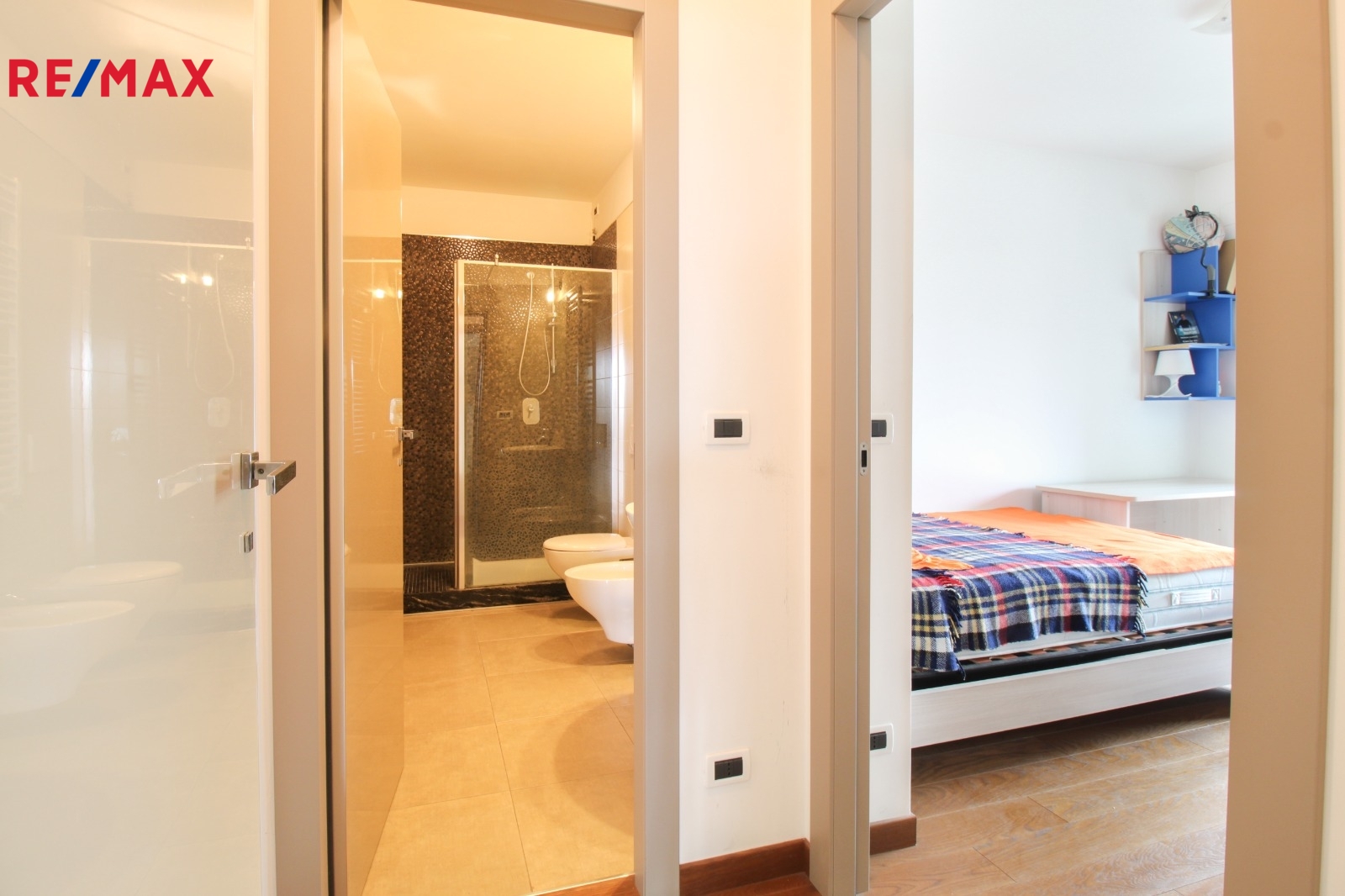 - druhá část nabízí další ložnici s vlastní koupelnou se sprchovým koutem, což oceníte například pro hosty nebo větší soukromí.