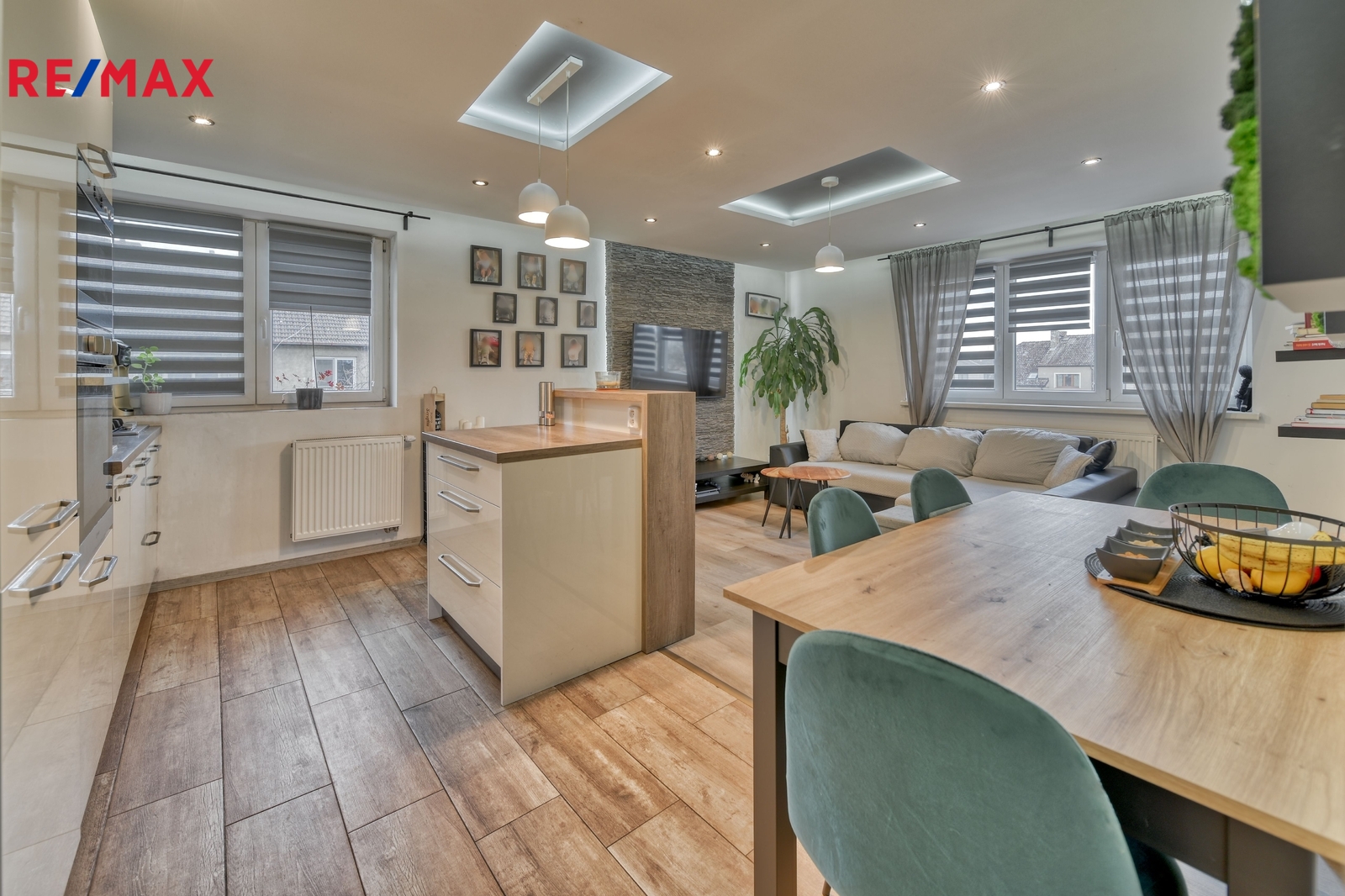 Byt prošel v roce 2016 kompletní rekonstrukcí, která zahrnovala novou kuchyňskou linku včetně spotřebičů, částečně nové podlahy a interiérové dveře, modernizaci koupelny a obnovu rozvodů vody i vytápění. V posledních letech proběhla výměna podlah za vinylové v obývacím pokoji, ložnici a dětském pokoji.