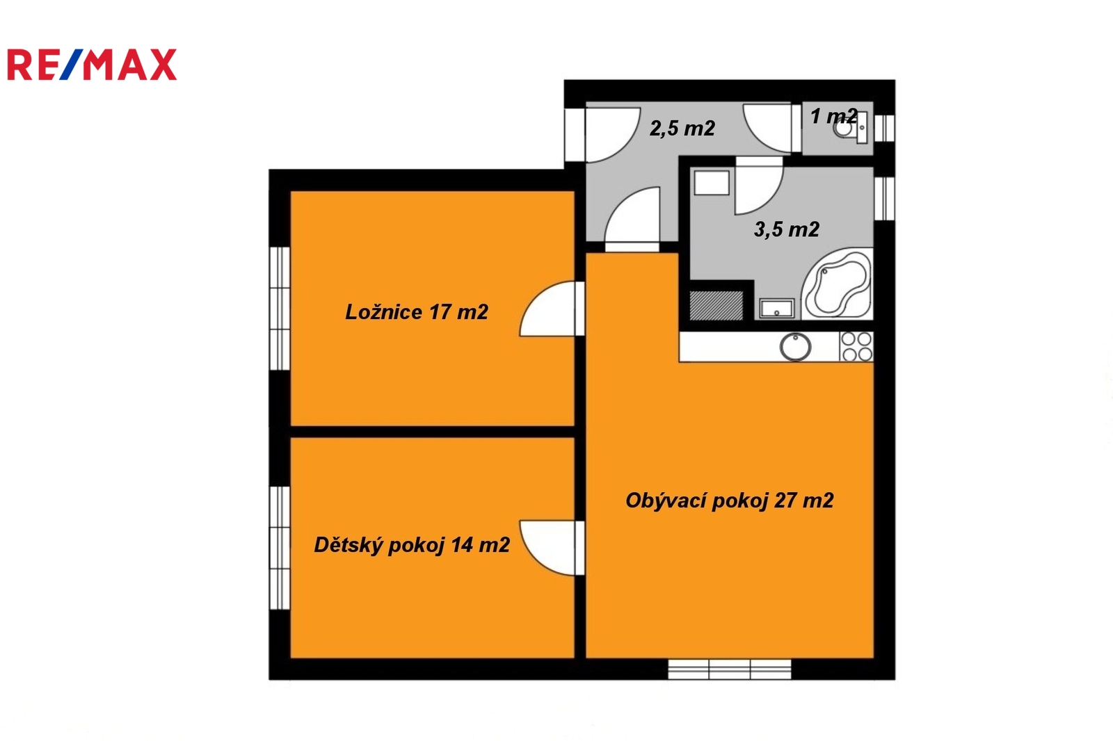 V kuchyňské lince je vestavěná lednice s mrazákem, plynová varná deska, vestavěná trouba, mikrovlnná trouba. V koupelně je prostorná sprcha a WC je samostatně.