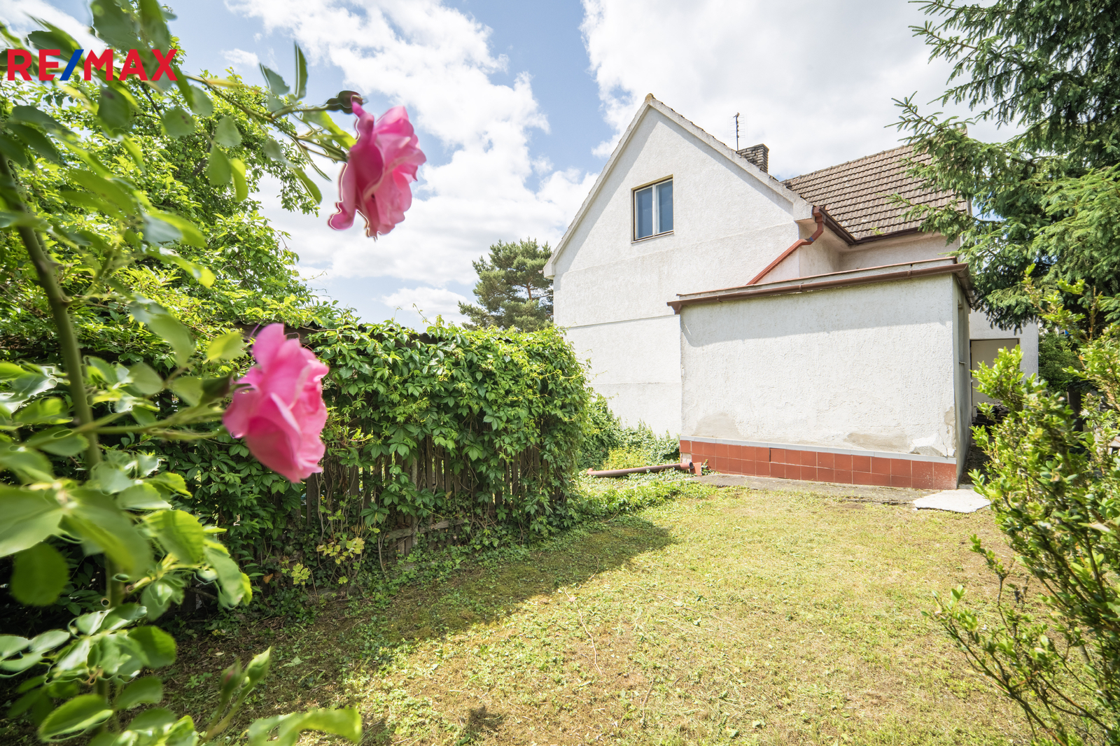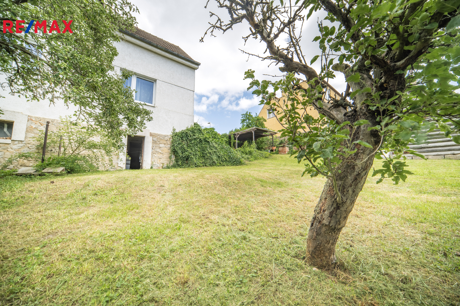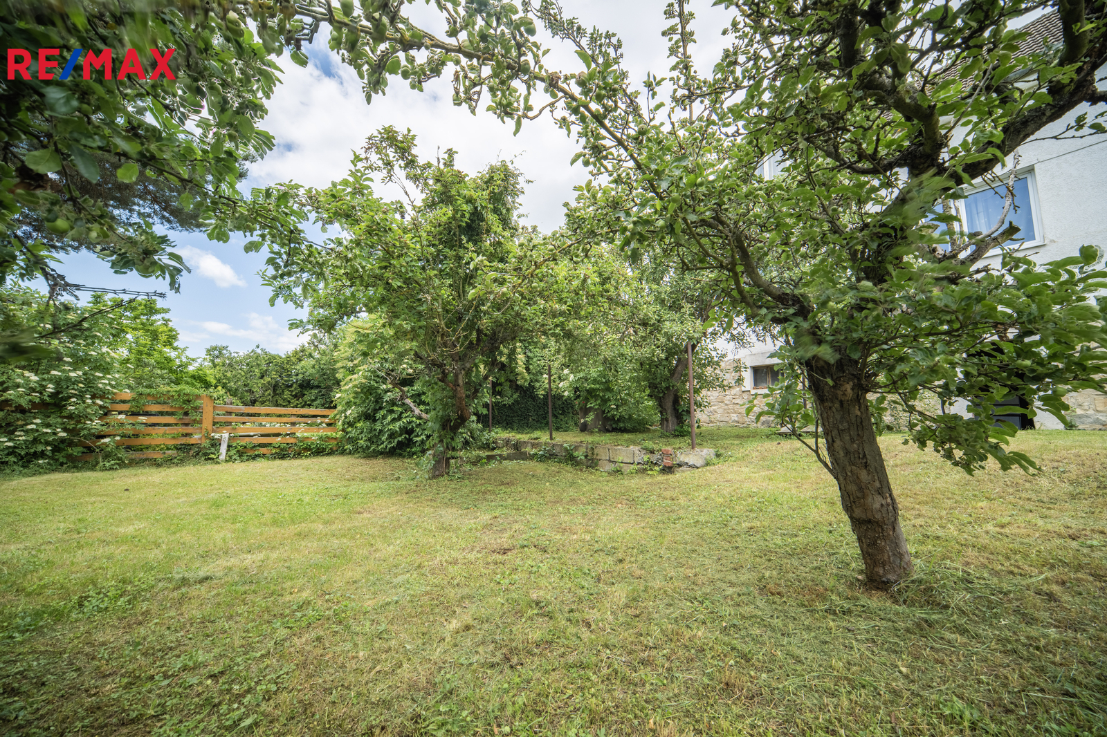 Zahrada je oplocená, s ovocnými stromy. Na pozemku vlastní studna.