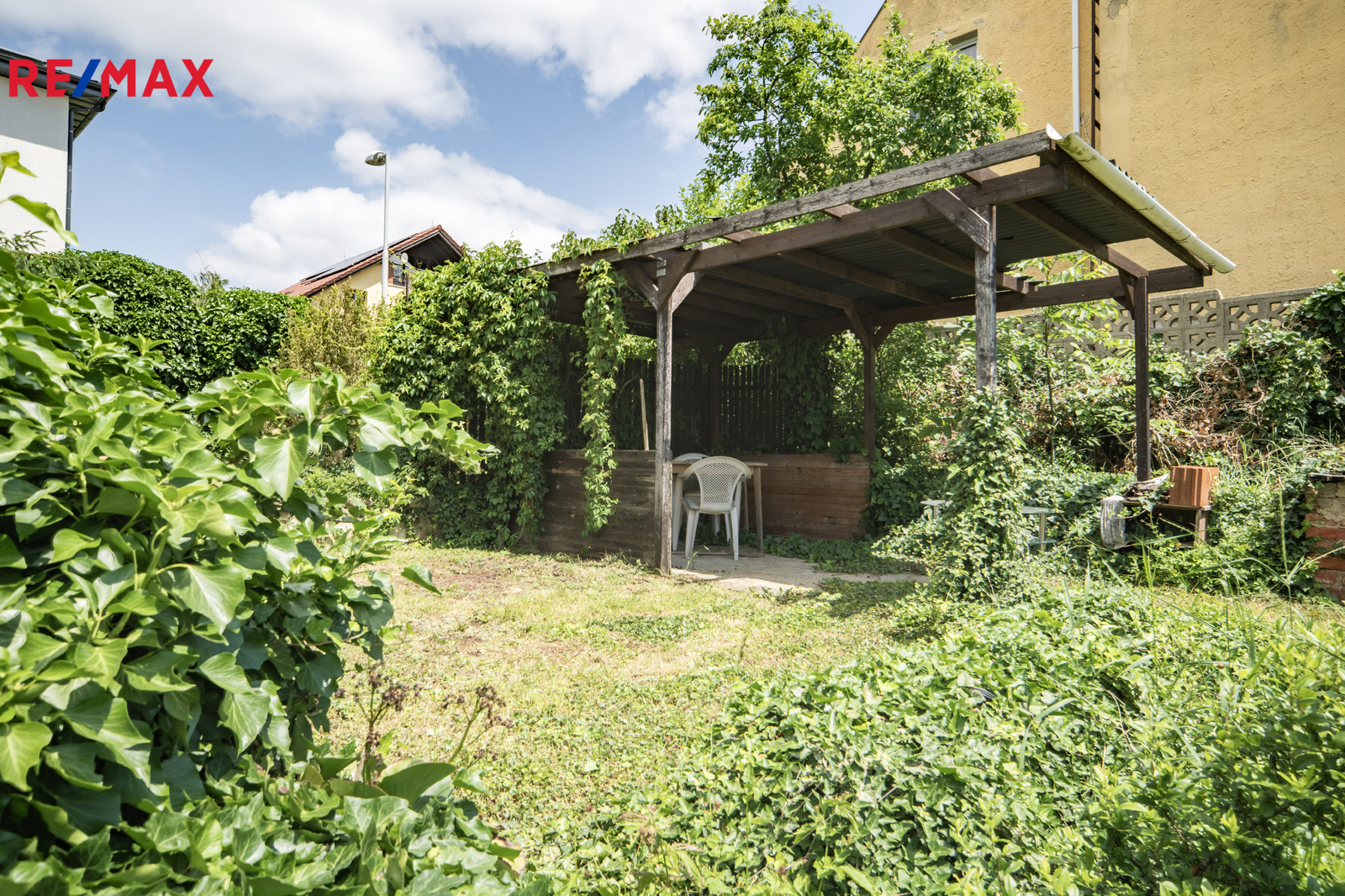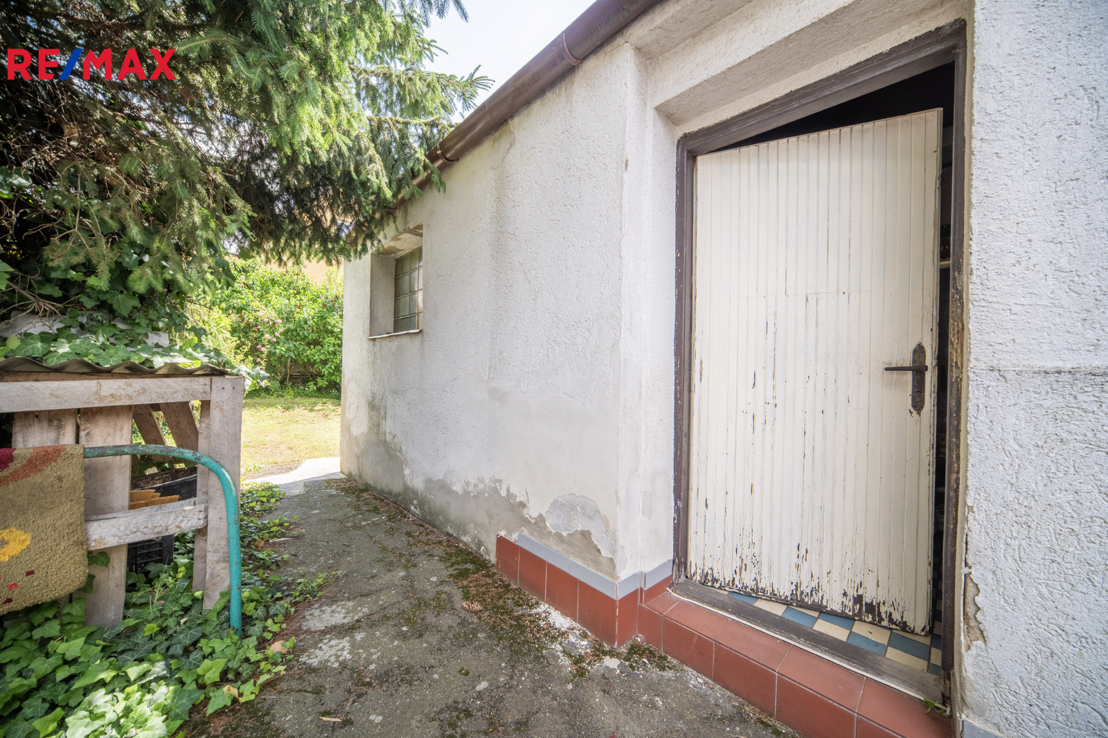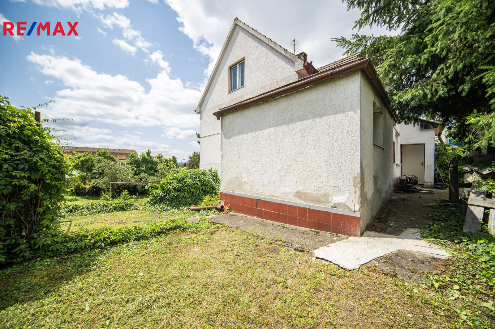 Zahrada je oplocená, s ovocnými stromy. Na pozemku vlastní studna.