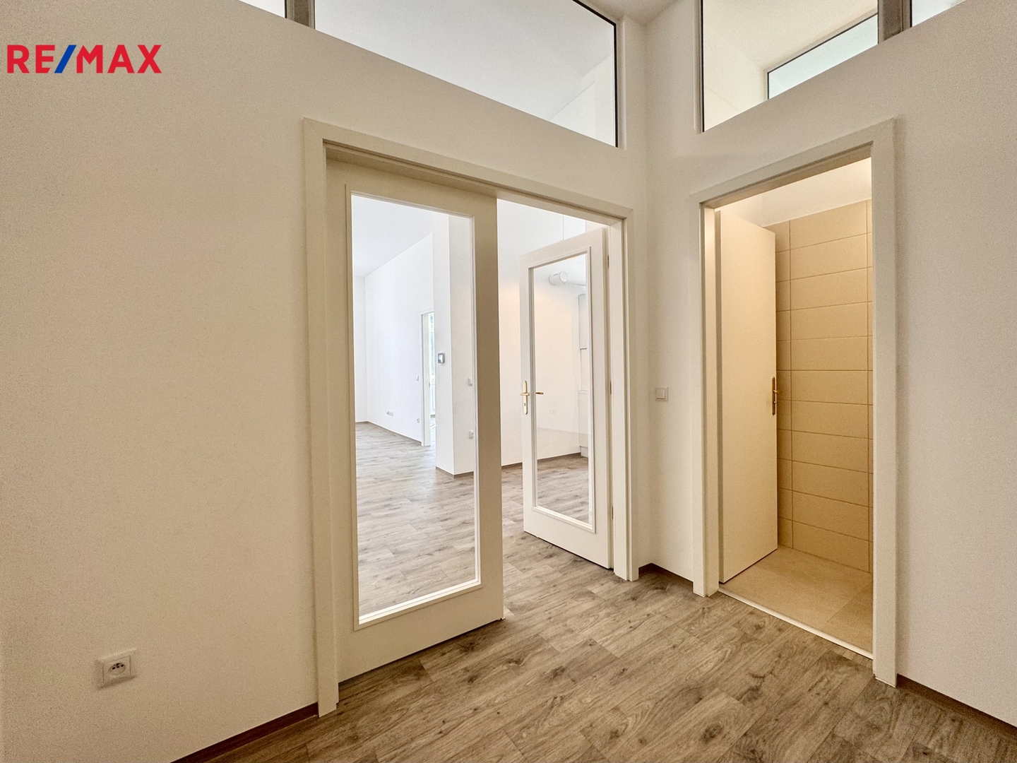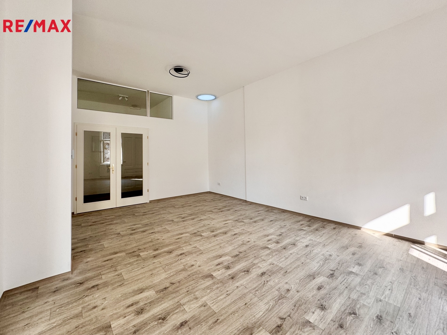 Vysoké stropy a původní dveře dodávají prostoru vzdušnost a eleganci, kterou v novostavbě nenajdete.