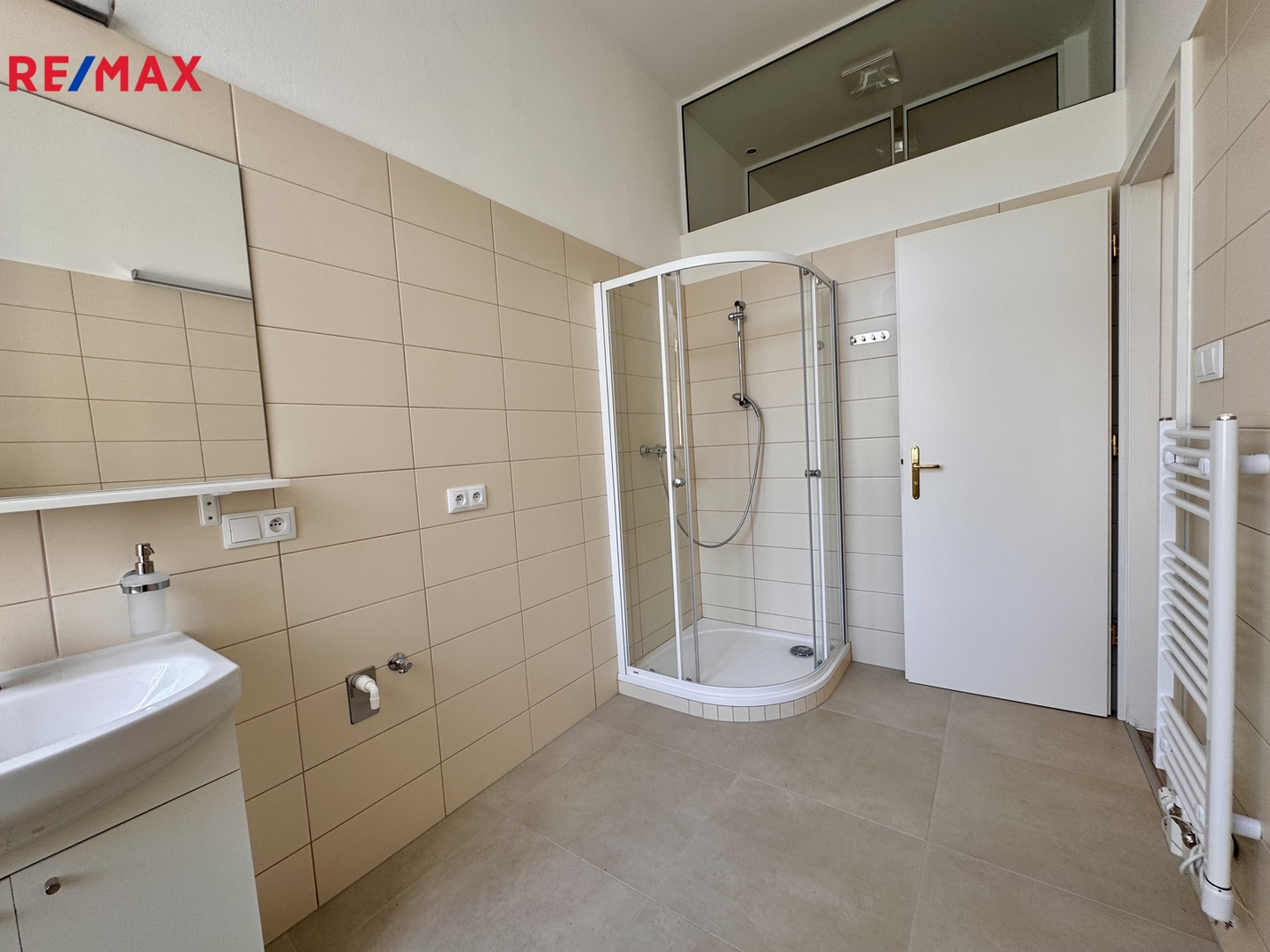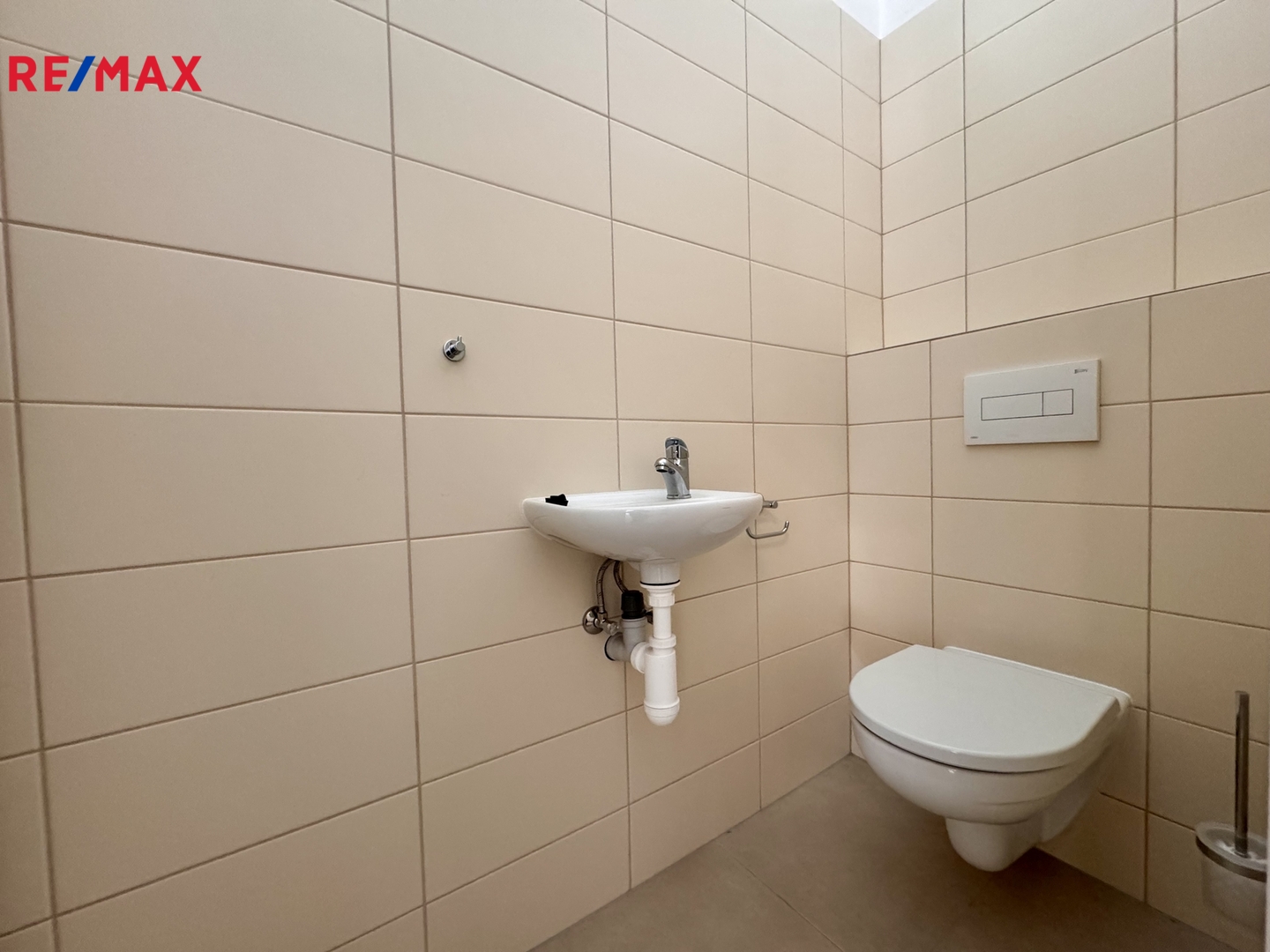 Koupelna je vybavena sprchovým koutem. Toaleta s vlastním umyvadlem je oddělená, což je vždy praktičtější řešení.