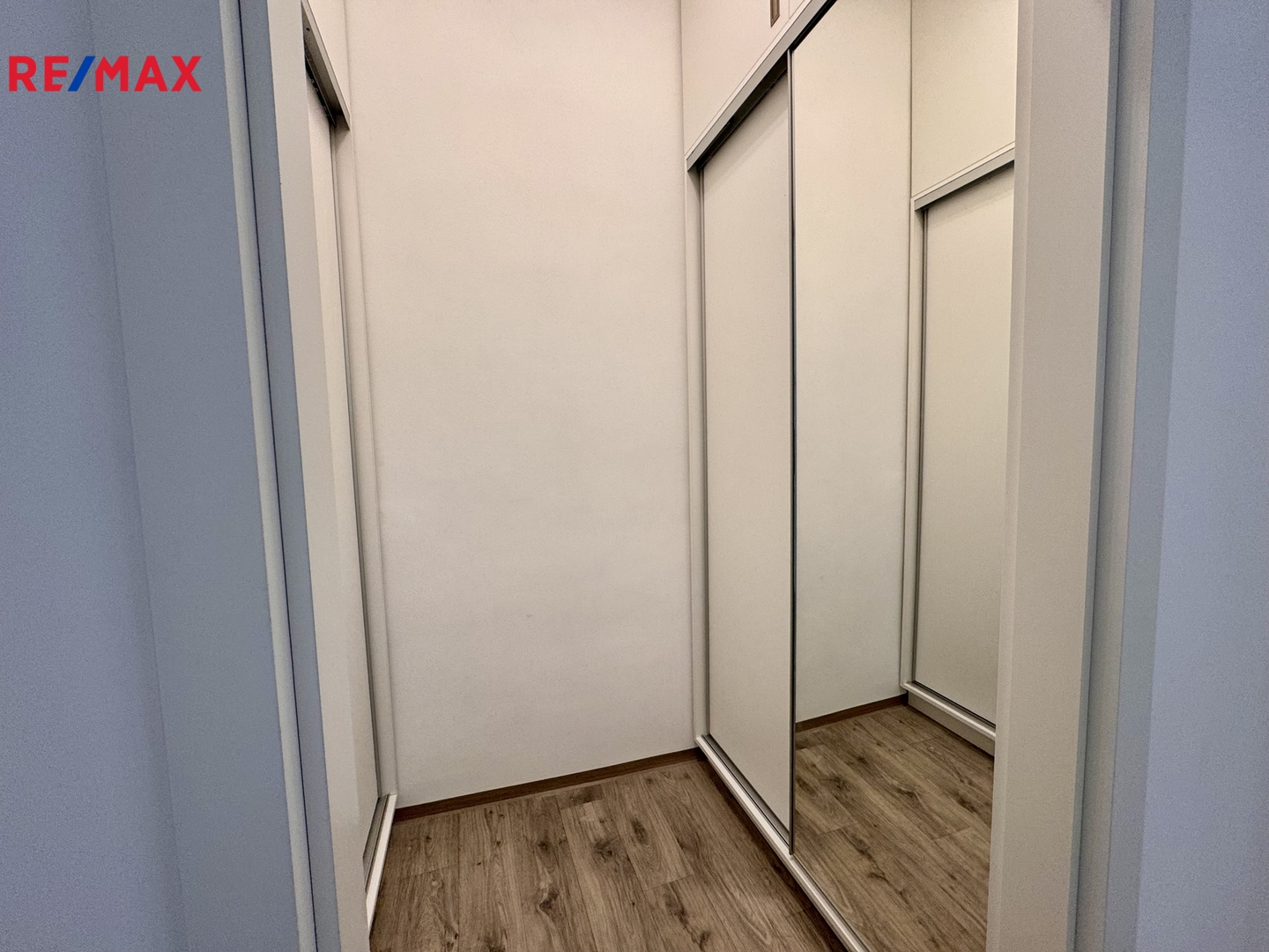Praktické vestavěné skříně a kvalitní plovoucí podlahy.