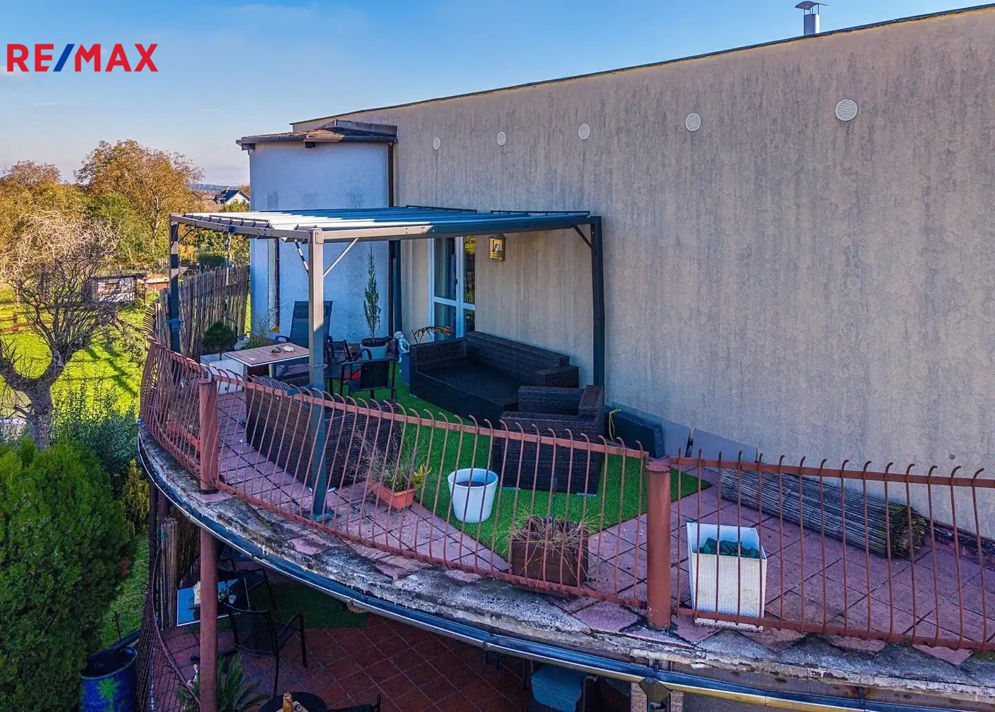 Součástí nemovitosti jsou dvě terasy, upravená zahrada, garáž pro dvě auta a další parkovací plochy. Užitná ploch domu činí 360 m², celková plocha pozemku je 1 139 m².