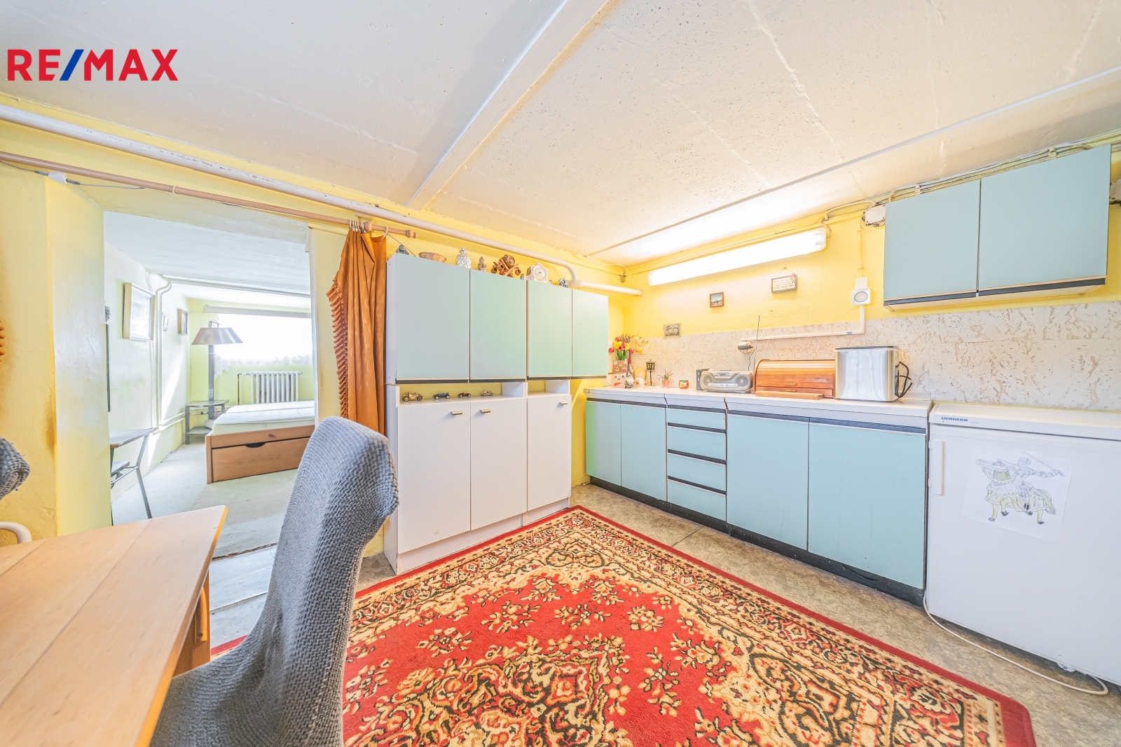 1.NP - Suterén o ploše 72,46 m² (bytová jednotka 2+kk) + technické zázemí a dílna.