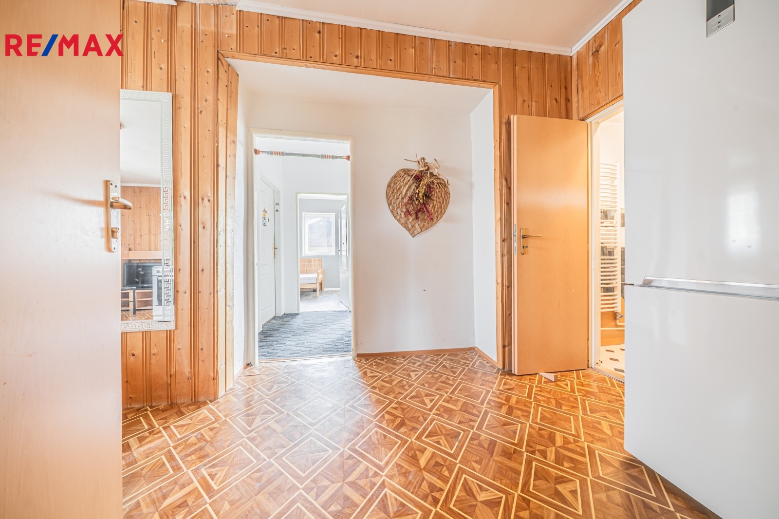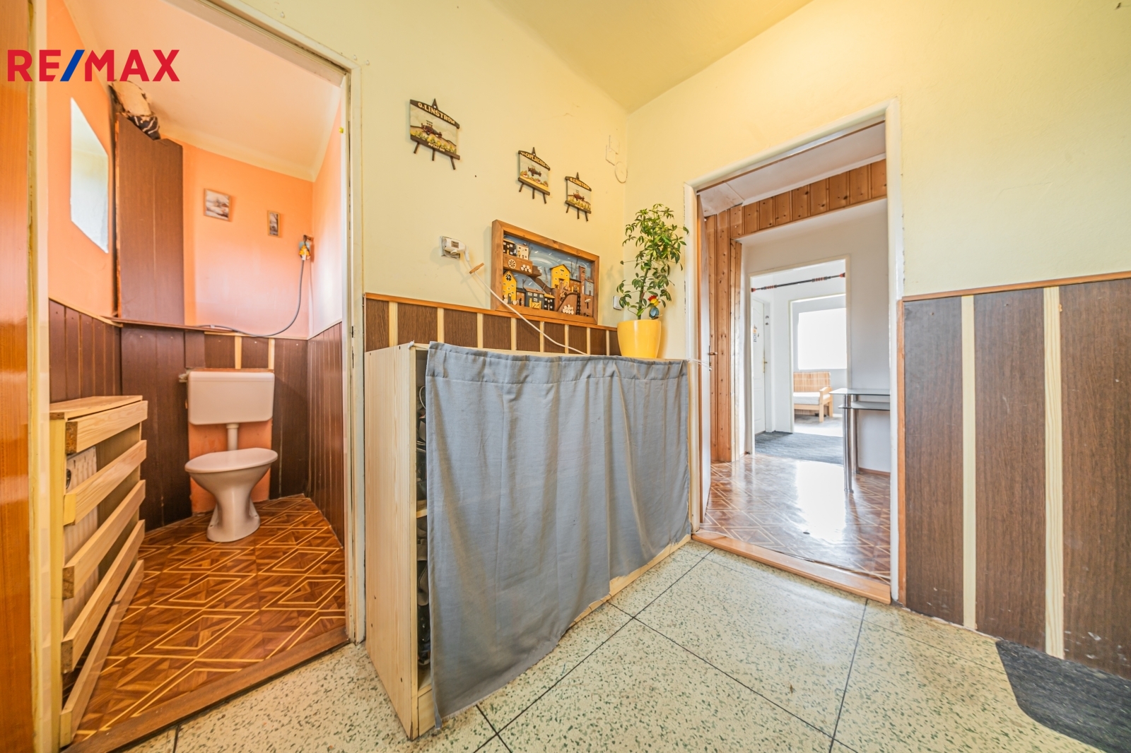 Dům je napojen na vodovodní řád + je možnost využití stávající kopané studny (8m).
