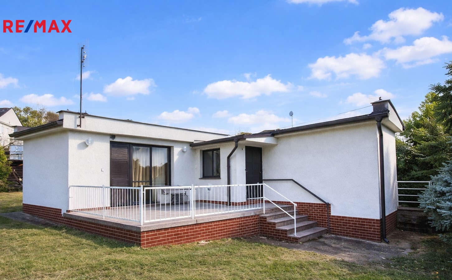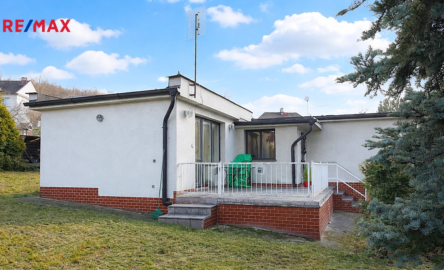 Samostatný zděný, přízemní rodinný dům o dispozici 2+1 a užitné ploše 89 m² v zadní části zahrady.