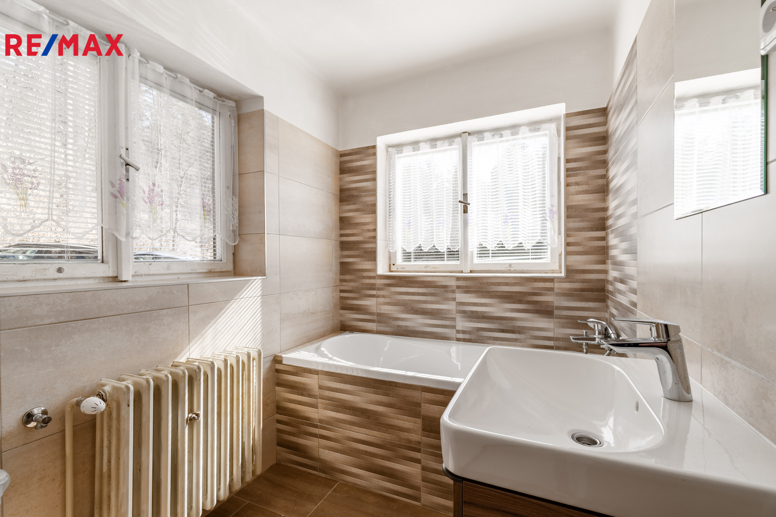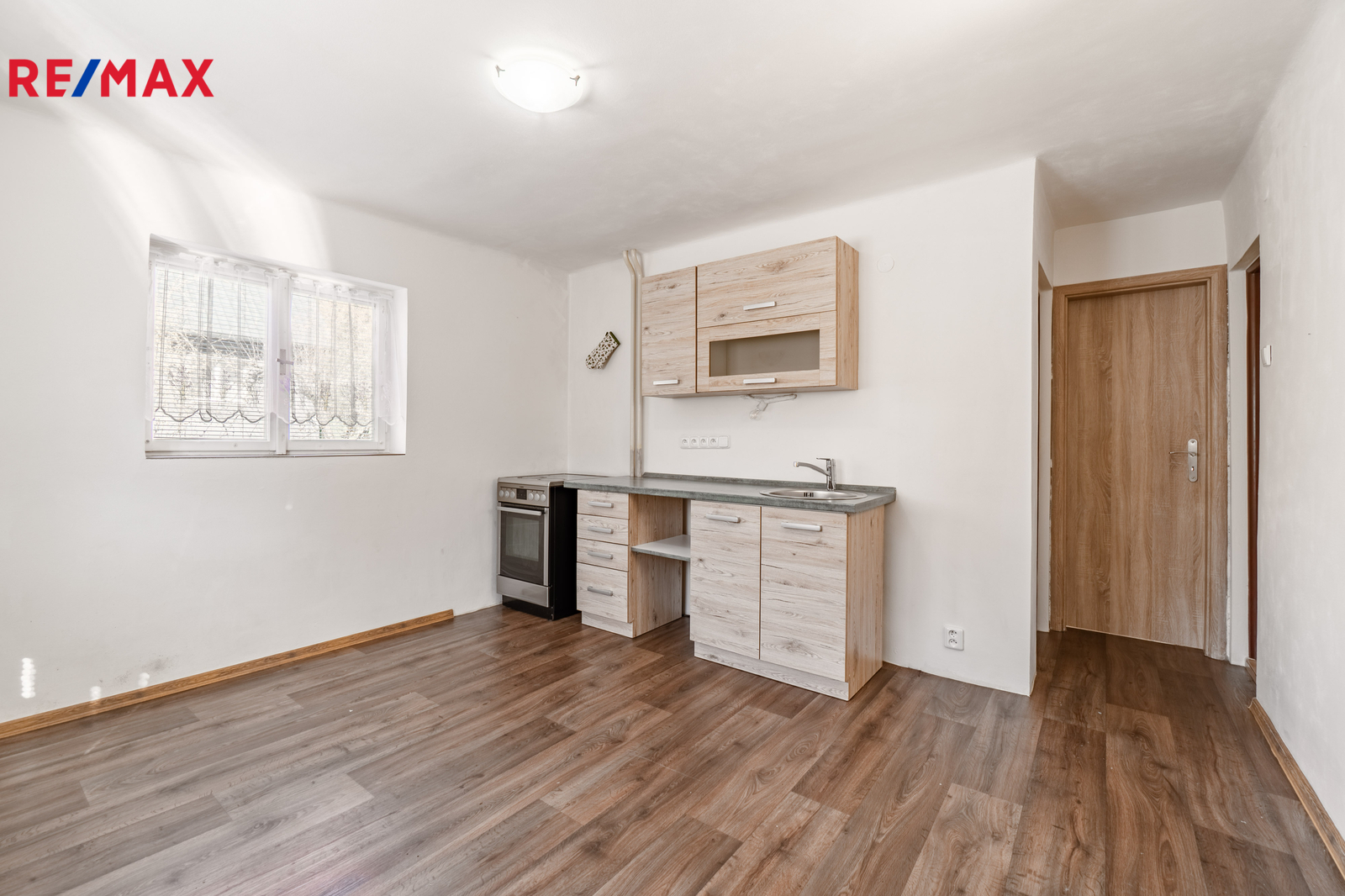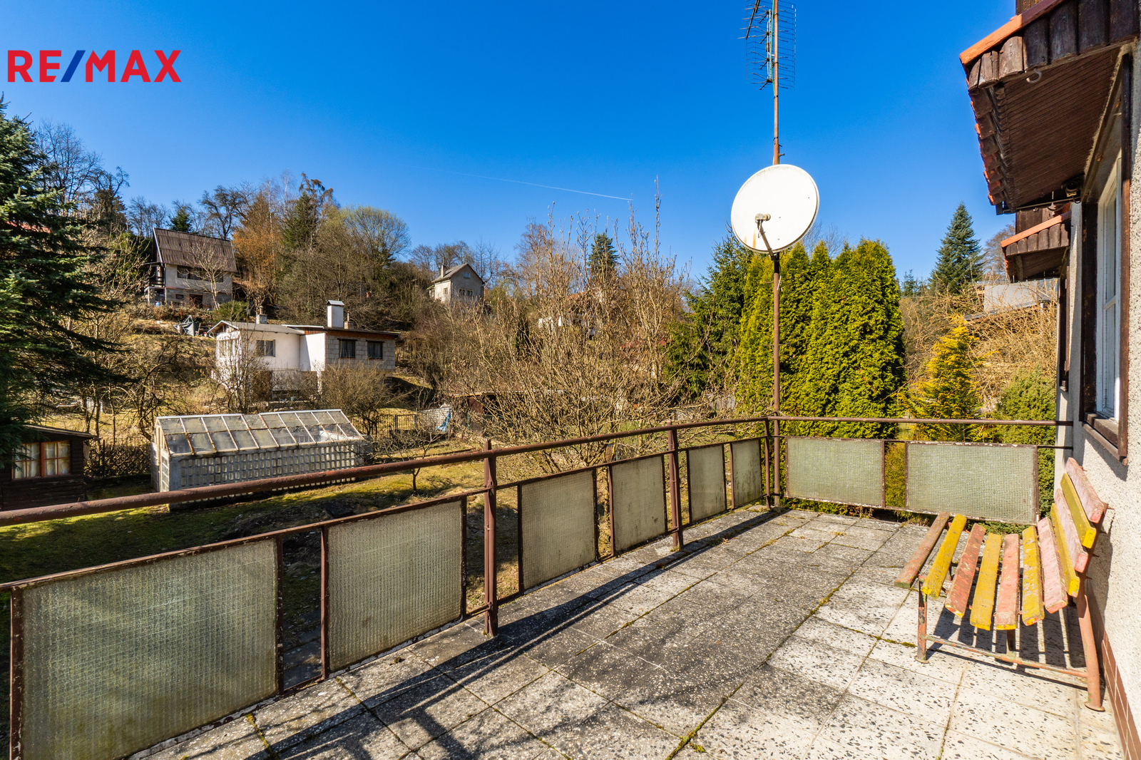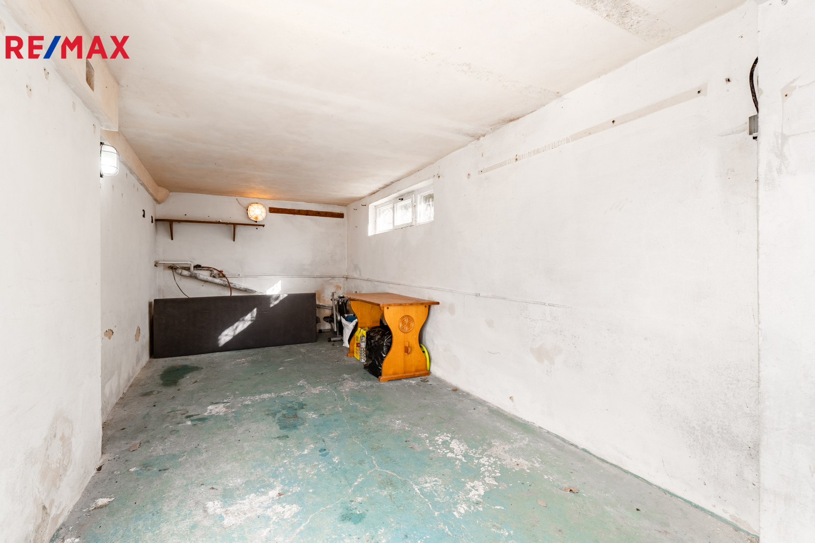 Pod terasou je k dispozici garáž a další místnost se samostatným vstupem (14 m²), původně kotelna, kterou lze snadno upravit na obytný prostor.