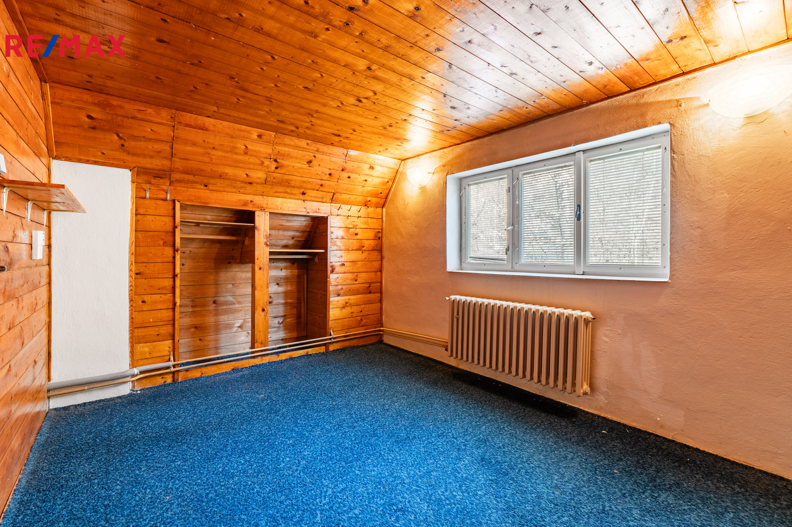 Po dřevěných schodech se dostanete do podkroví, kde najdete: