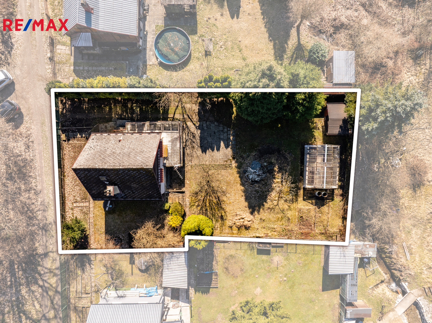 Chata stojí na pronajatém pozemku o výměře 661 m², na kterém se nachází také zahradní domek a skleník.