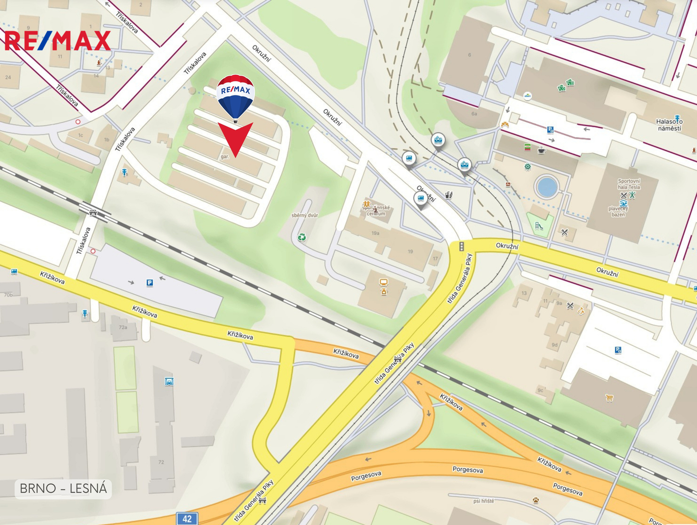 Během pár minut jste na Velkém městském okruhu, což zajišťuje bleskový výjezd z města i spojení s ostatními čtvrtěmi. Perfektní návaznost – v těsné blízkosti dopravního uzlu Halasovo náměstí, ať už využijete tramvaje (7,9), rychlé vlakové spojení S3 (zastávka Brno-Lesná), nebo noční linky (N92, N93).